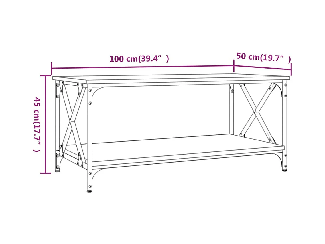 Goud Salontafel Sonoma eiken 100x50x45 cm Bewerkt hout en ijzer