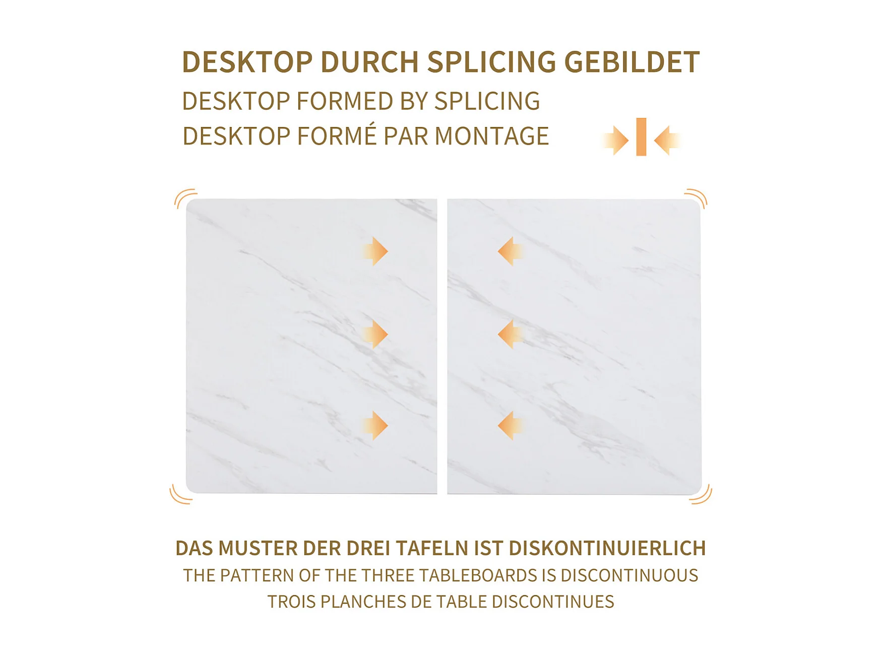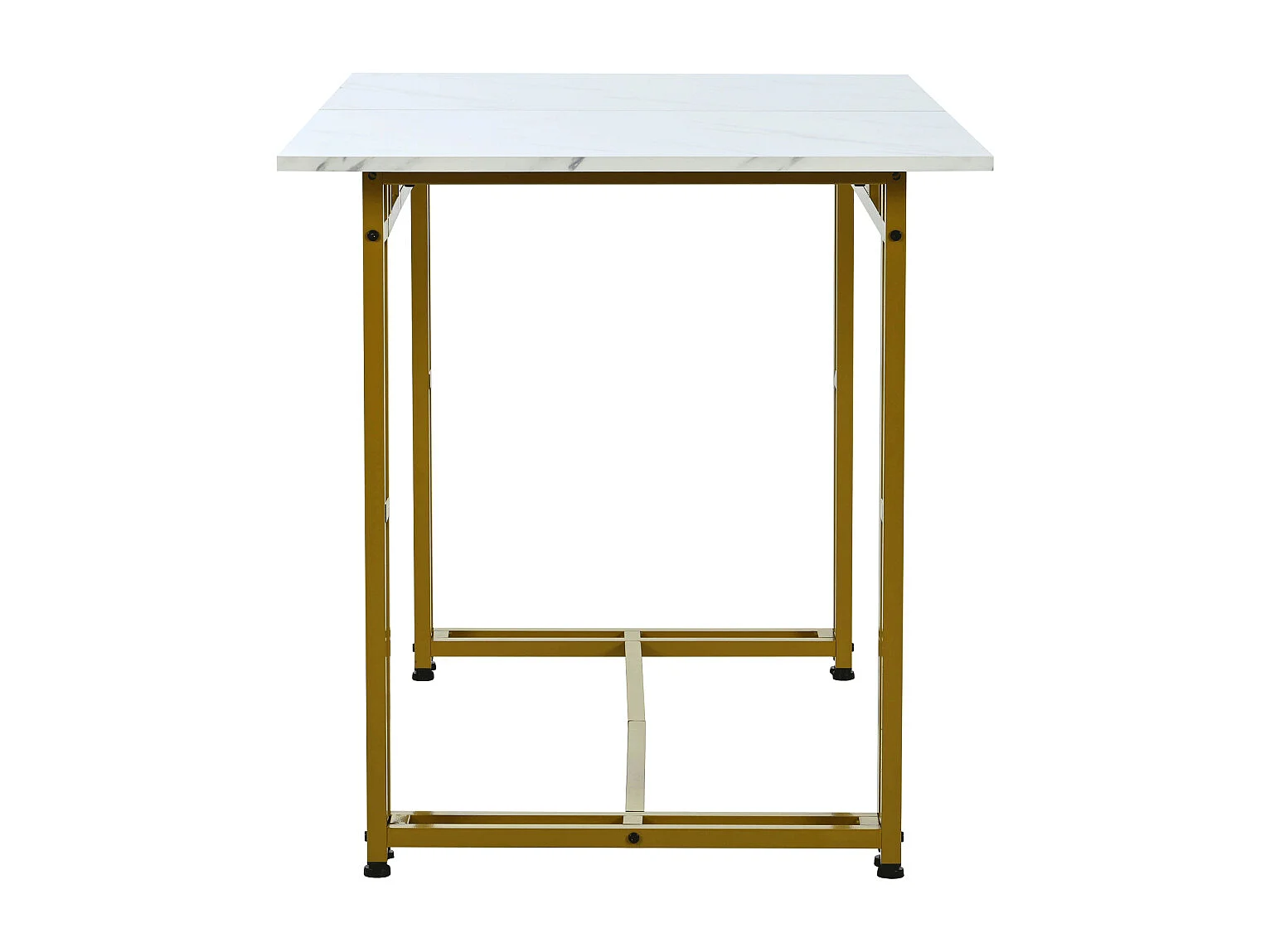 Gouden eettafelset (120x70cm) met 4 zwarte fluwelen stoelen.