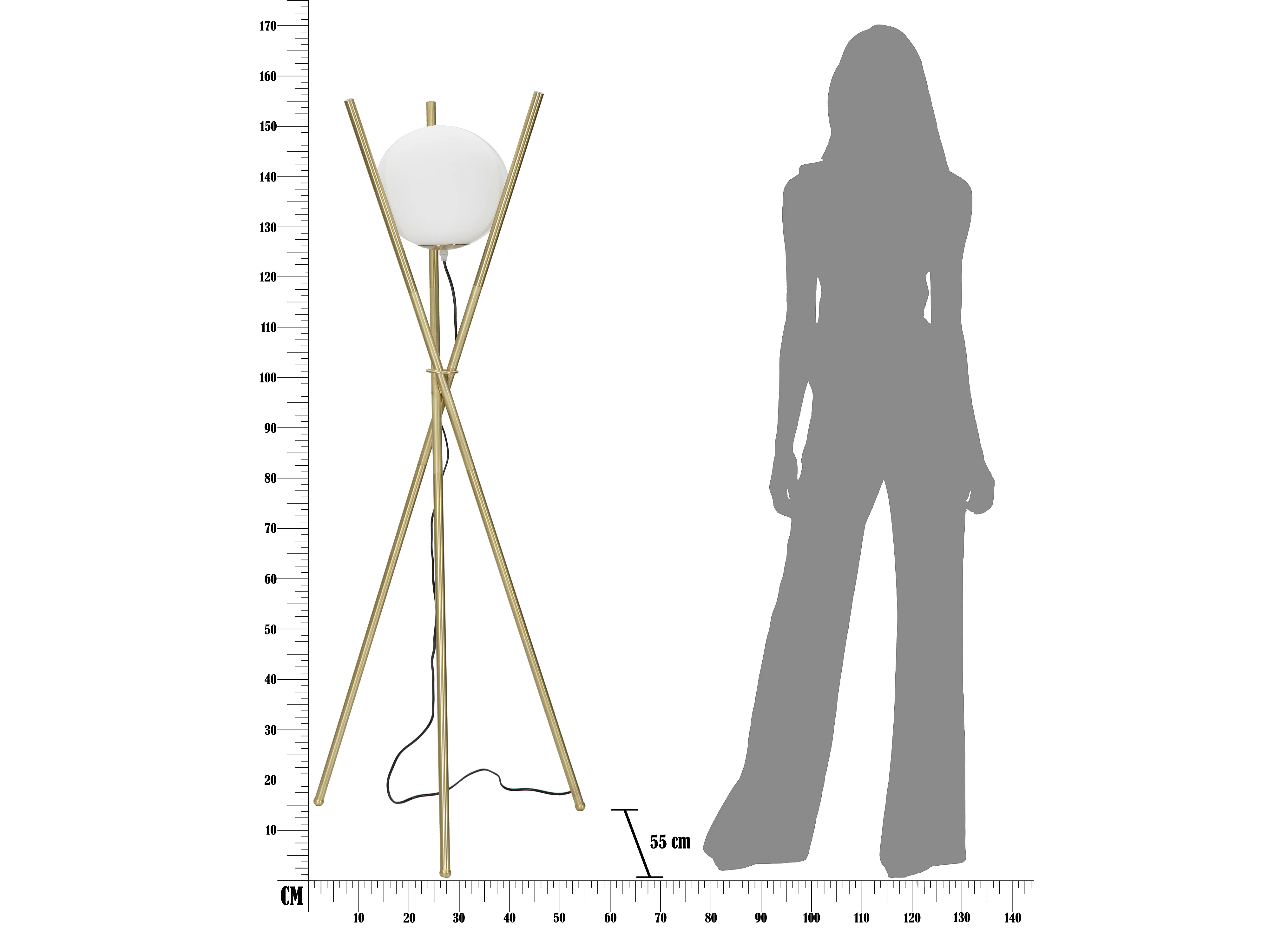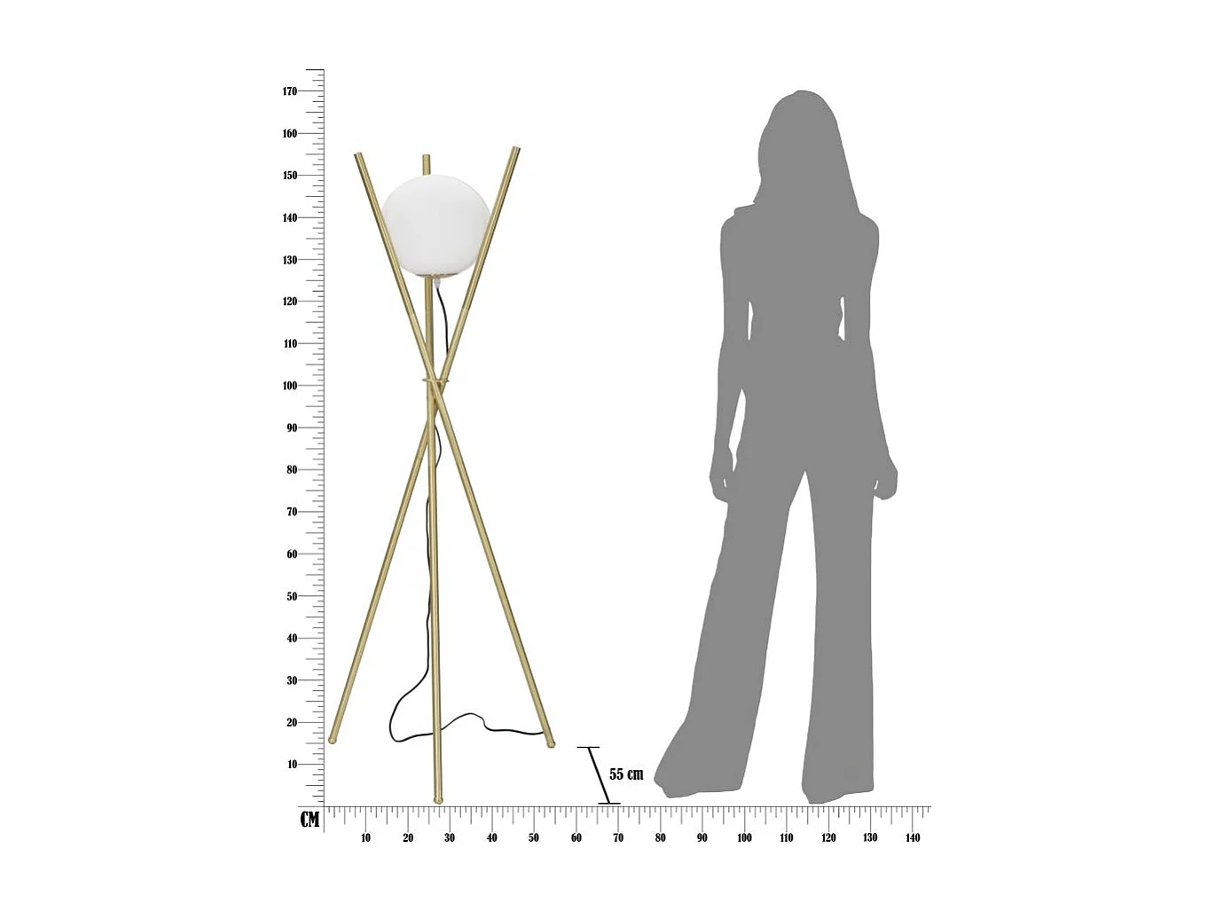 Gouden metalen staande lamp met witte glazen bol Ø 55x155 cm