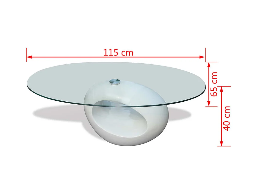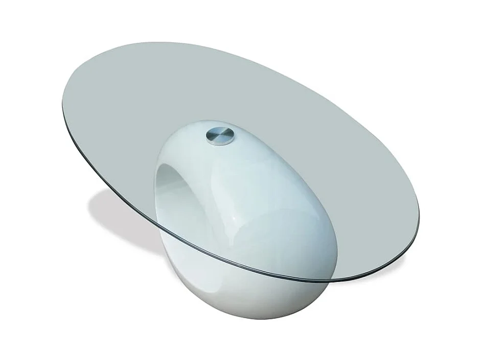 Gouden salontafel met glanzend wit ovaal glazen blad