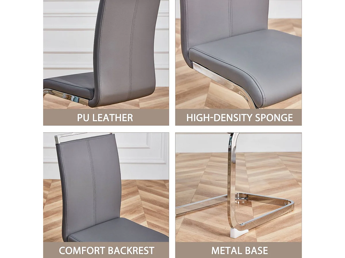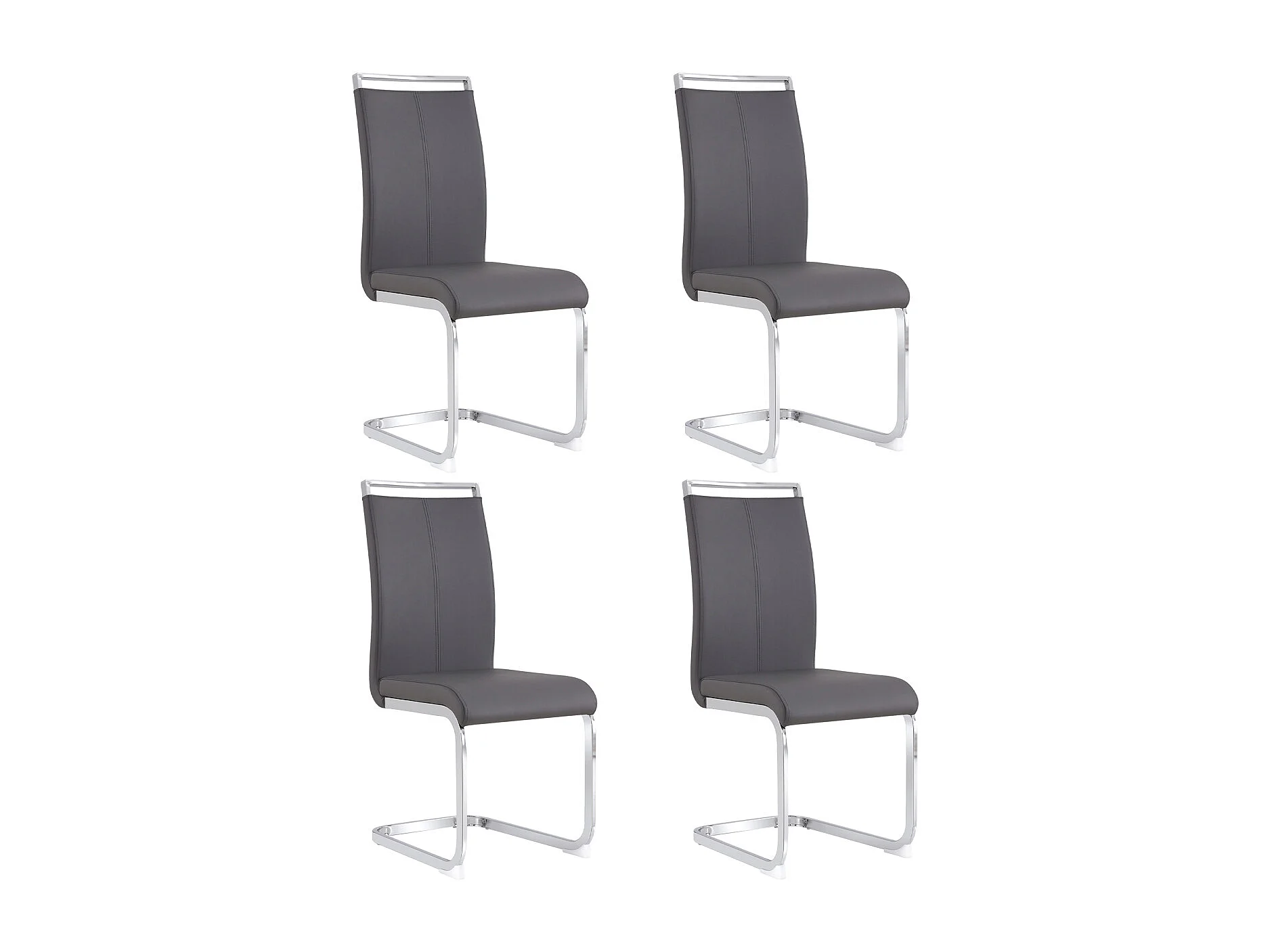 Grijze cantileverstoelen (set van 4) - chroom frame, kunstleer, draagvermogen 120 kg