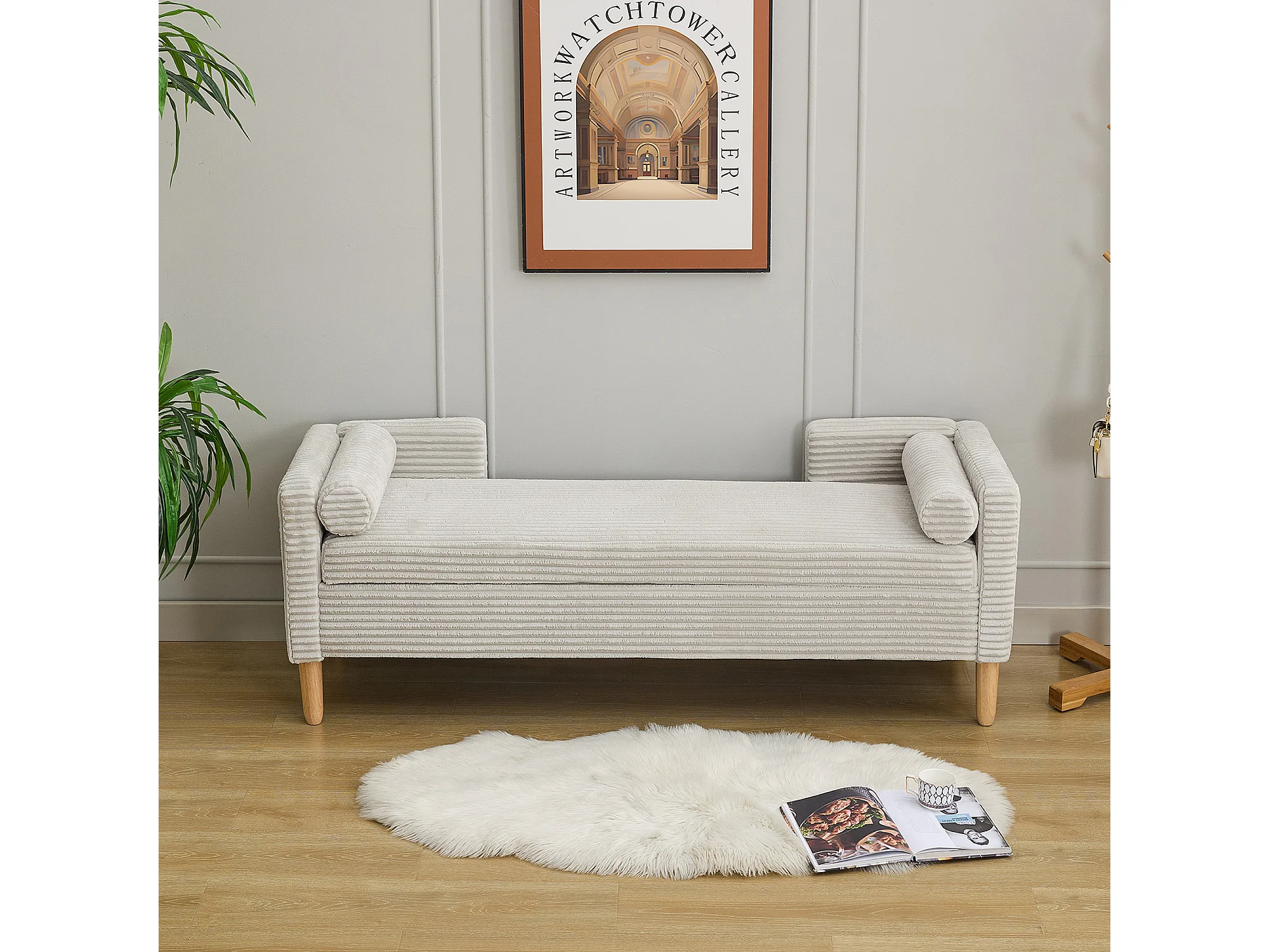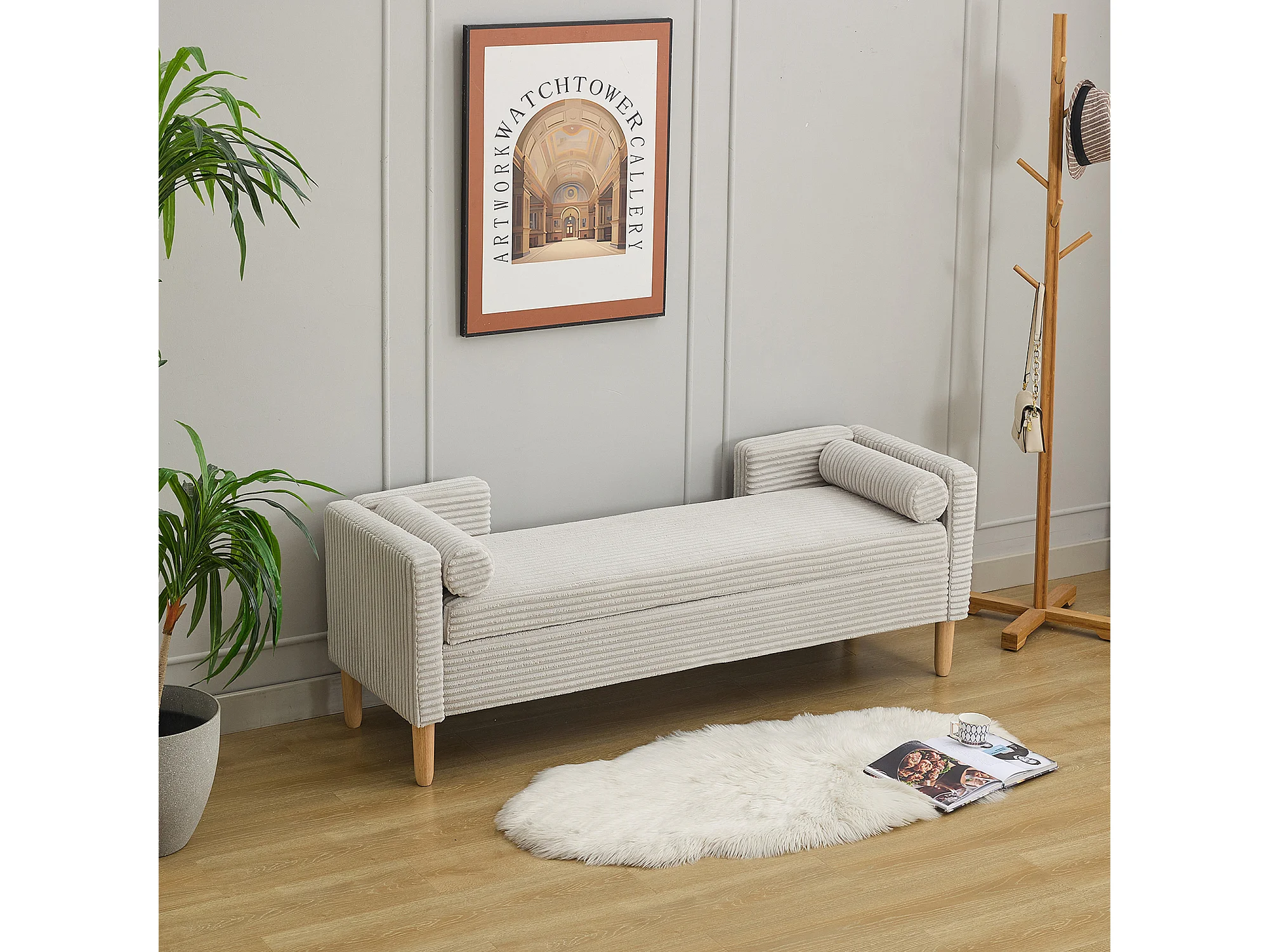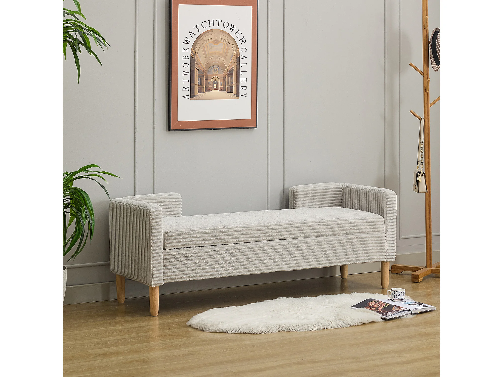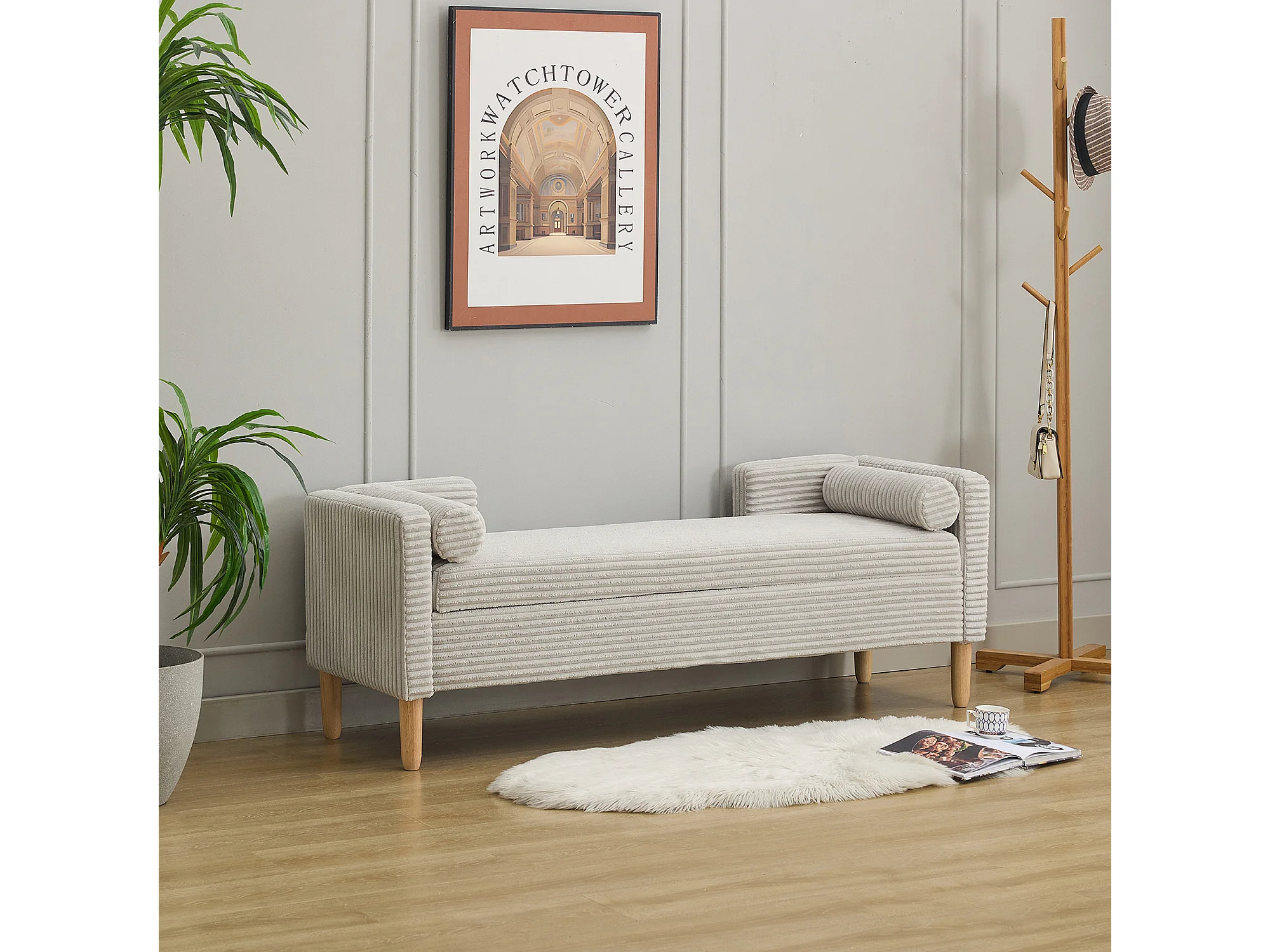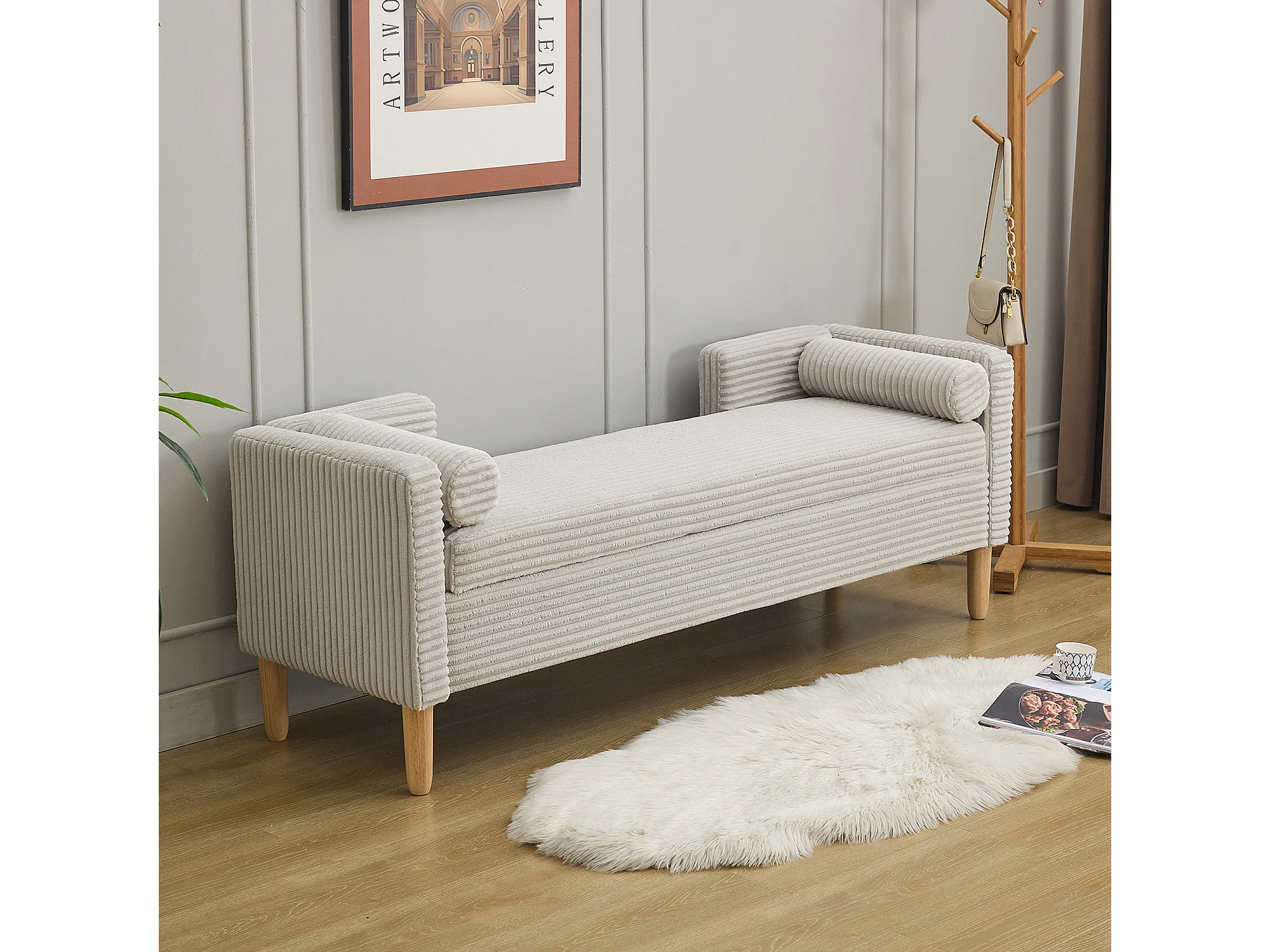 Grijze corduroy bedbank - Voor slaapkamer en hal