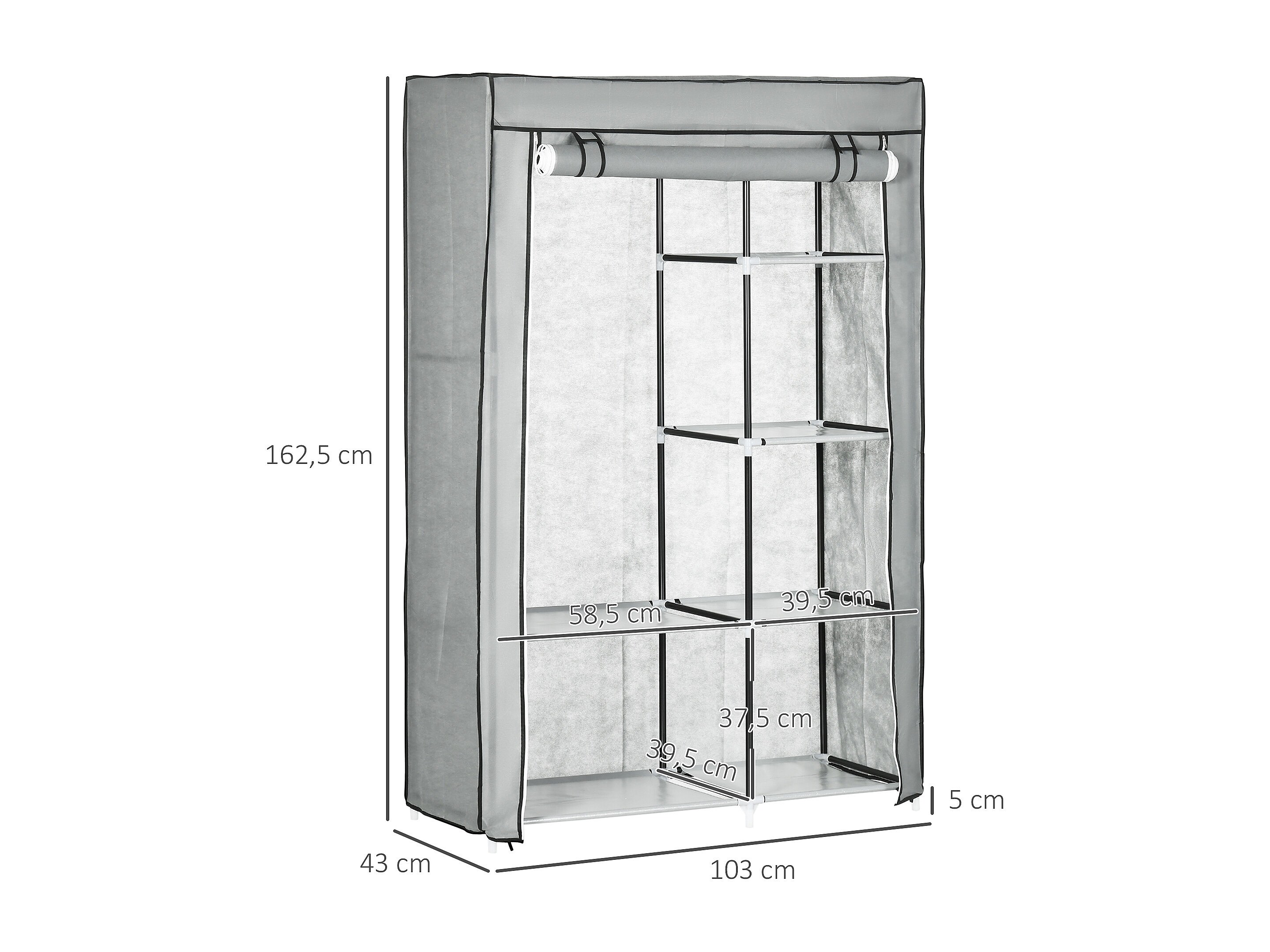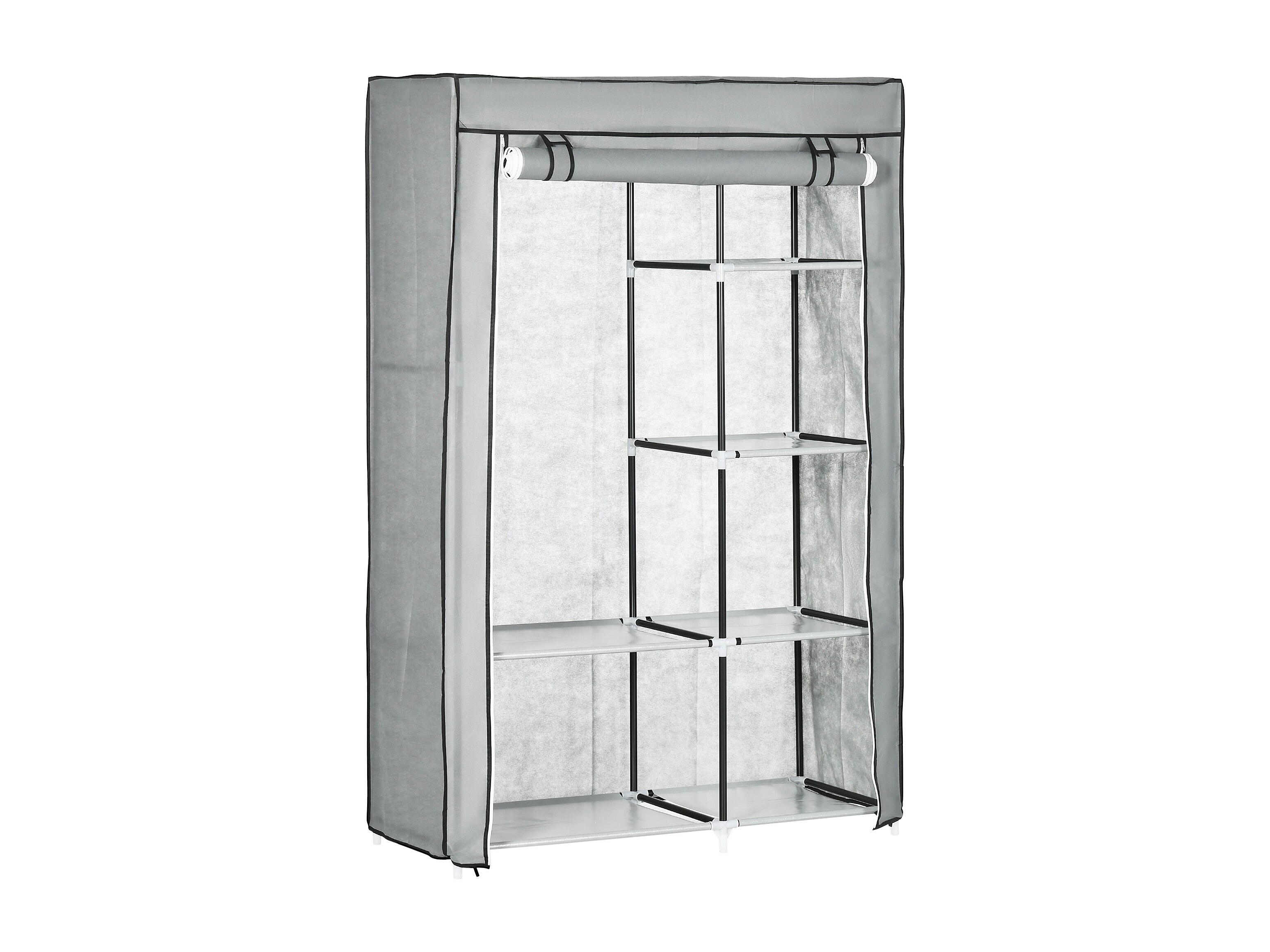 Grijze stoffen opvouwbare kledingkast met 6 compartimenten - 103 x 43 x 162,5 cm, praktisch en ruimtebesparend voor slaapkamer of hal