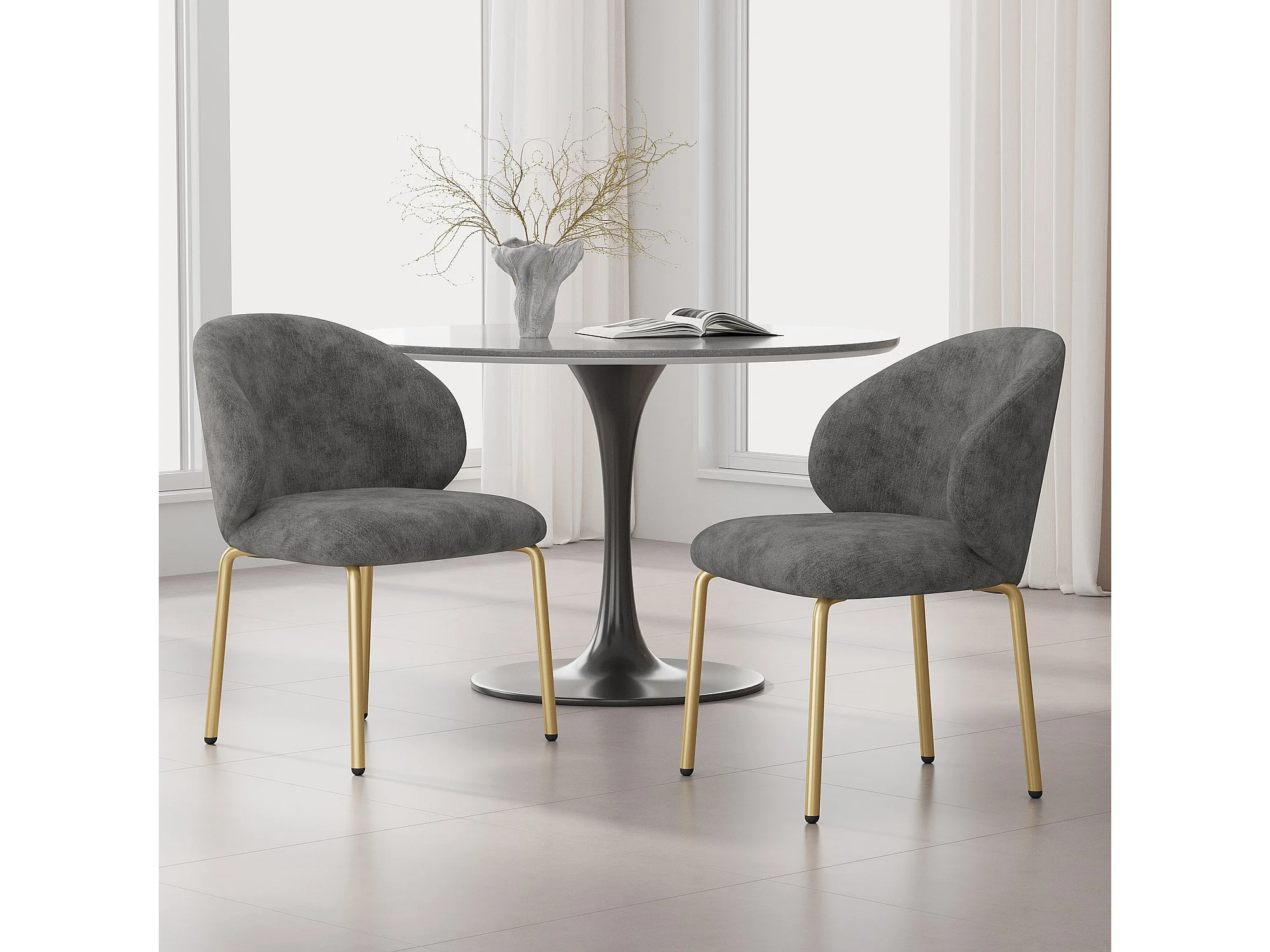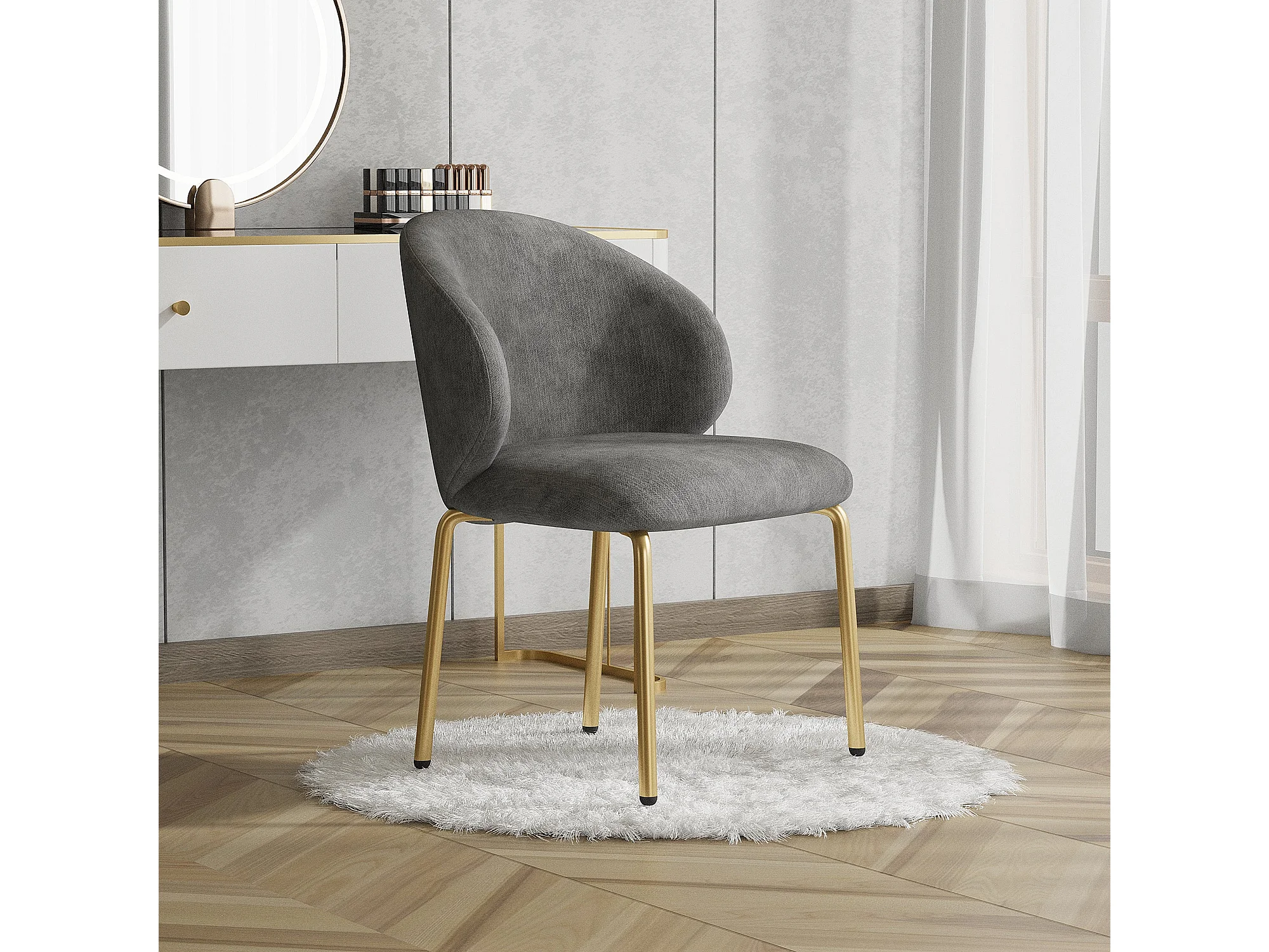 Grijze toilettestoel, van chenille, gouden poten, L47,5 × D56 × H74 cm