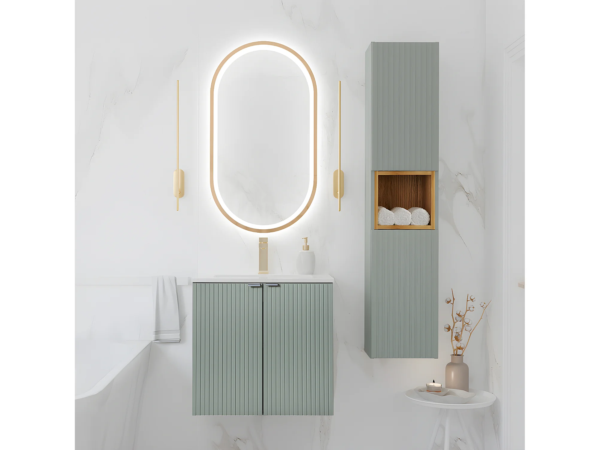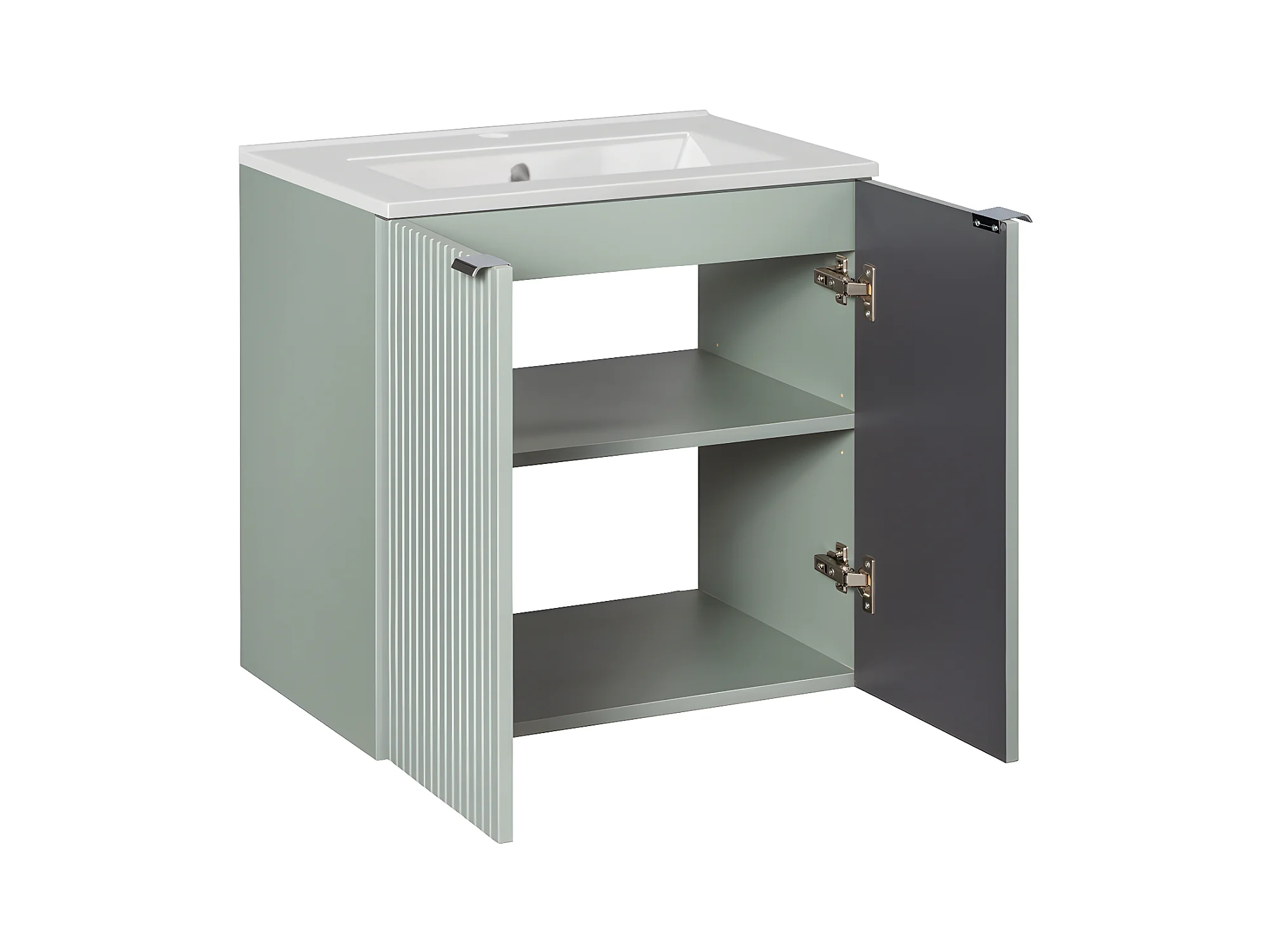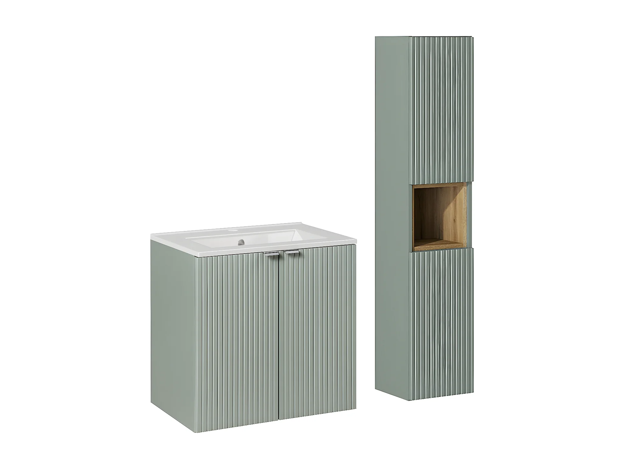 Groen en hout Jade enkel wastafelmeubel met 2-deurs 60cm inbouwwastafel en voetstuk
