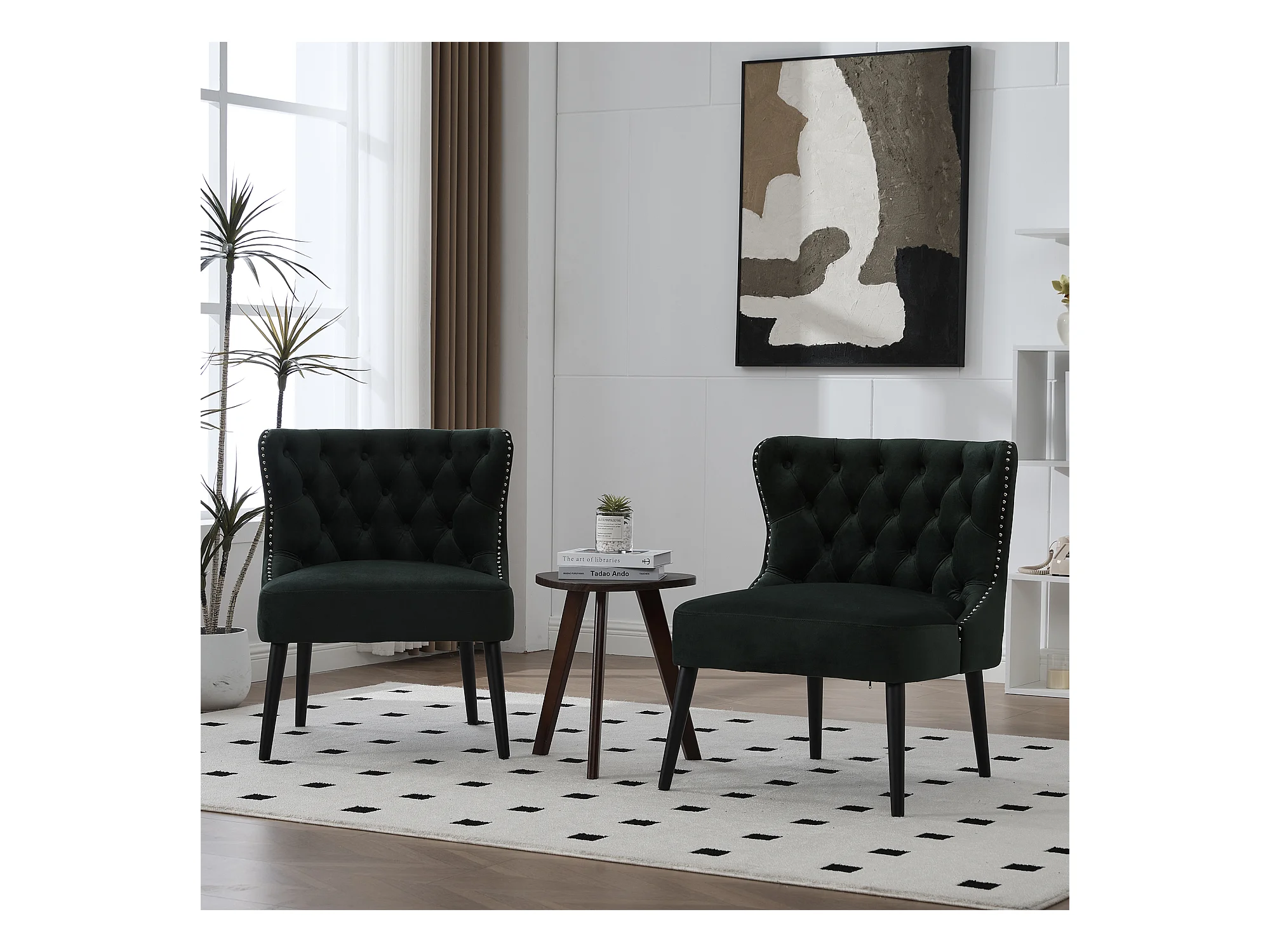 Groene stoel - Stoel met geklonken afwerking en massief houten poten - fluweel