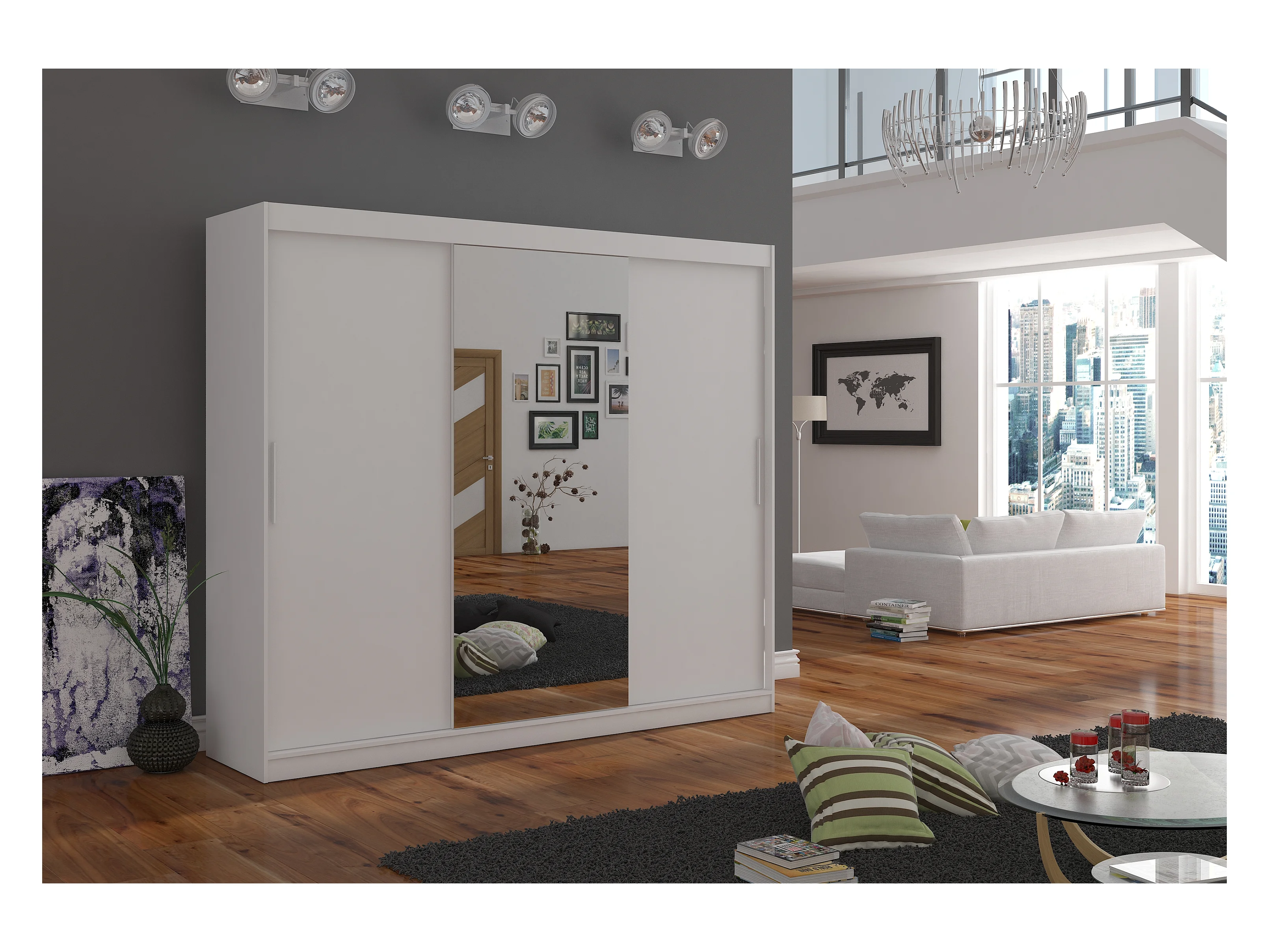 Grote slaapkamerkast met 3 witte schuifdeuren en Dany spiegel 250 cm