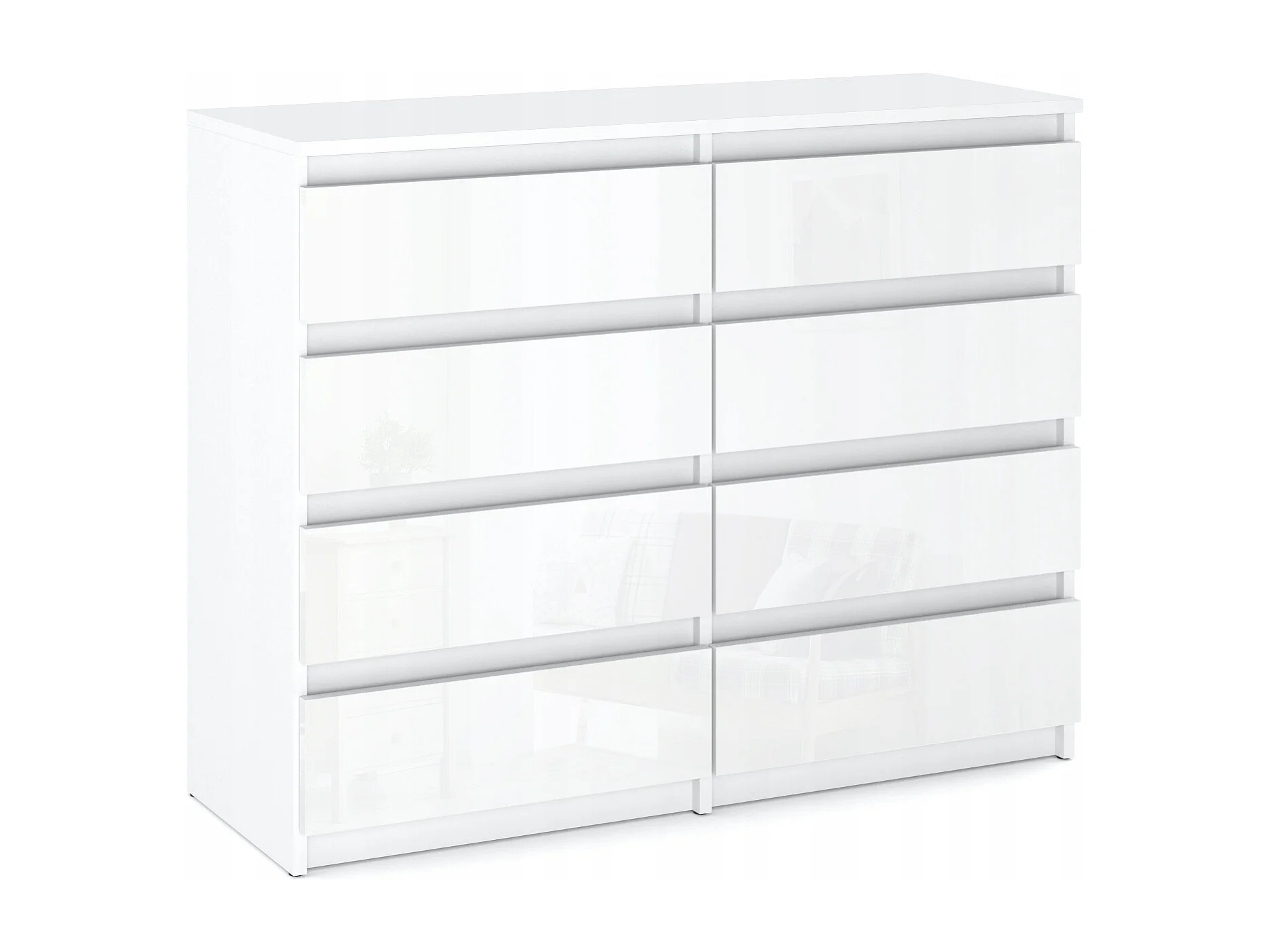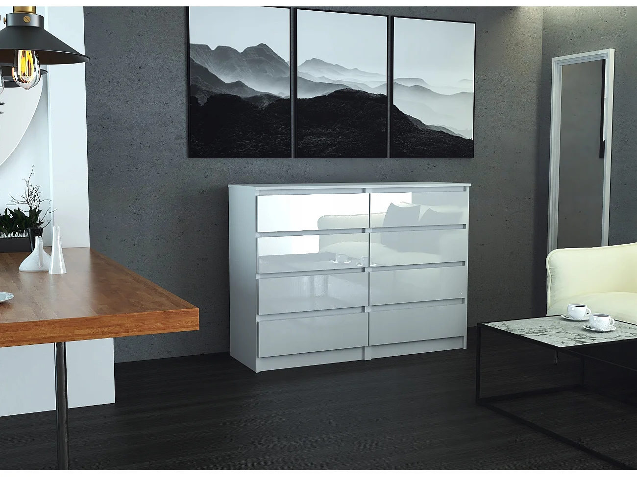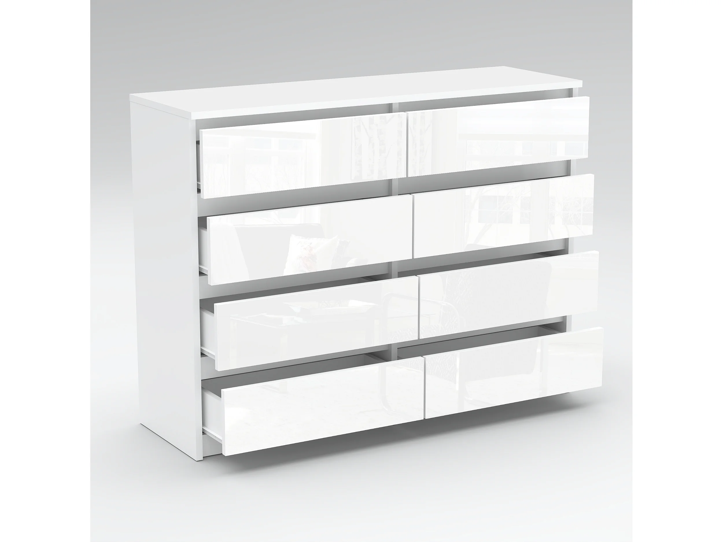 Grote witte gelakte commode van 120 cm met 8 lades – Modern tv-meubel voor de woonkamer