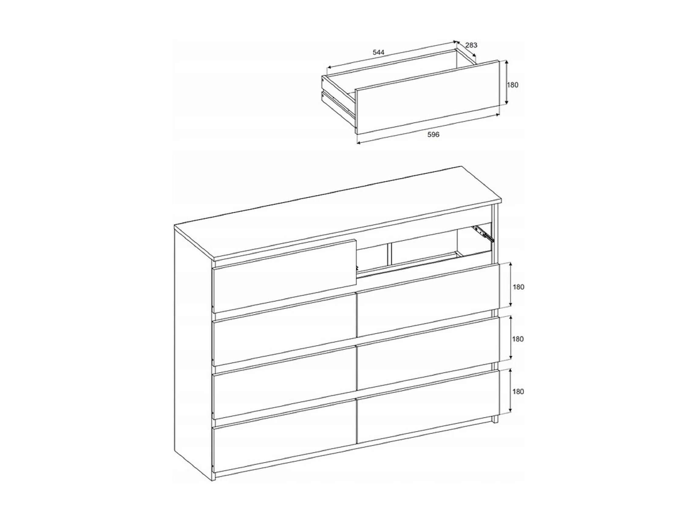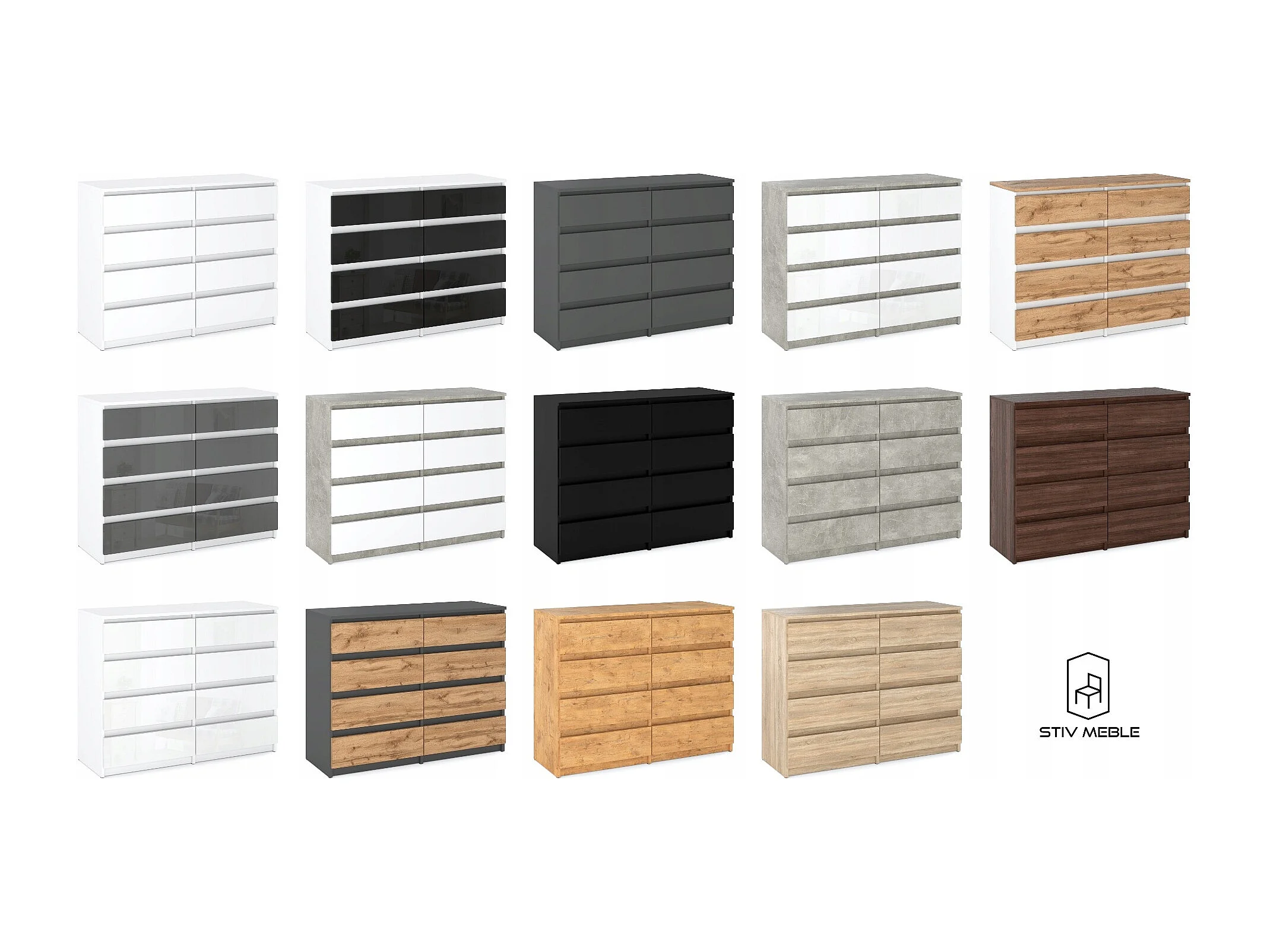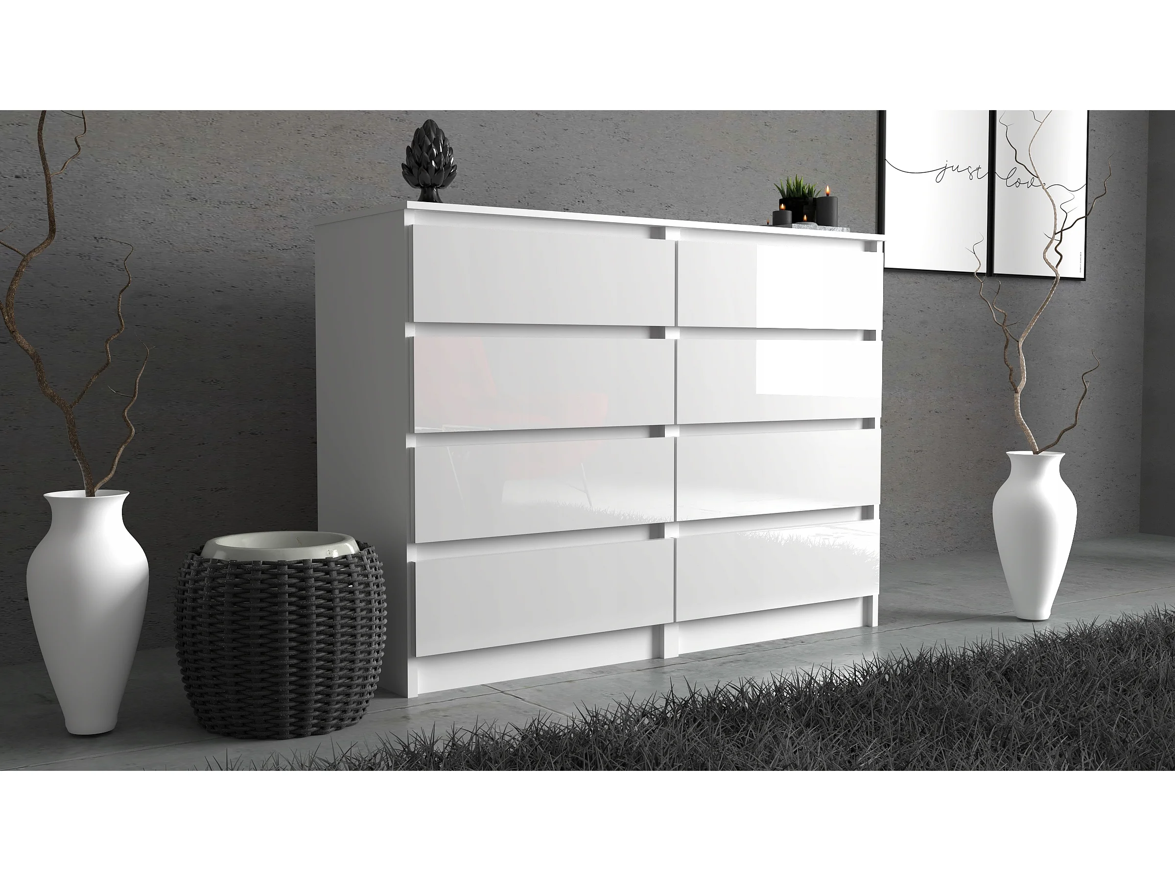 Grote witte gelakte commode van 120 cm met 8 lades – Modern tv-meubel voor de woonkamer