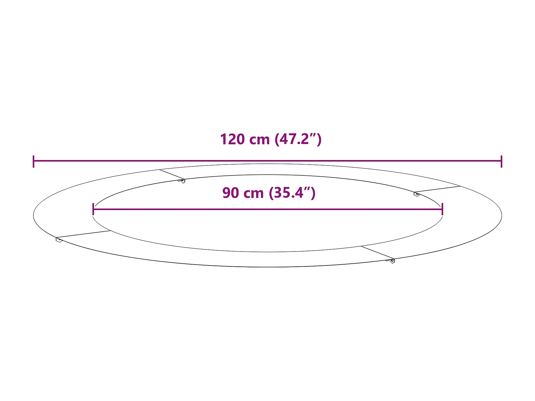 Zwarte metalen potring met een diameter van 70 cm