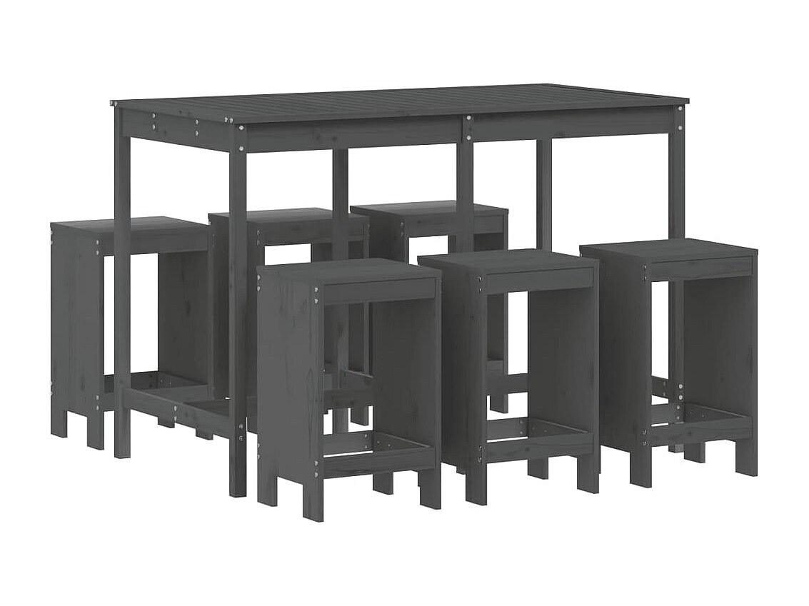 Hakim 7-delige Tuinbarset massief grenenhout grijs