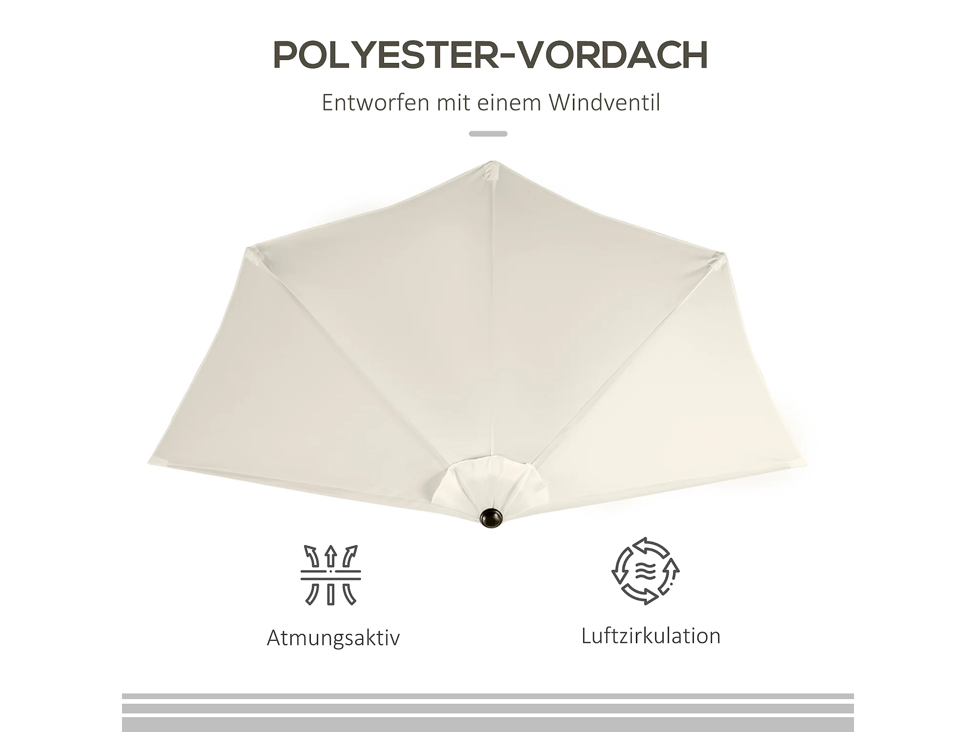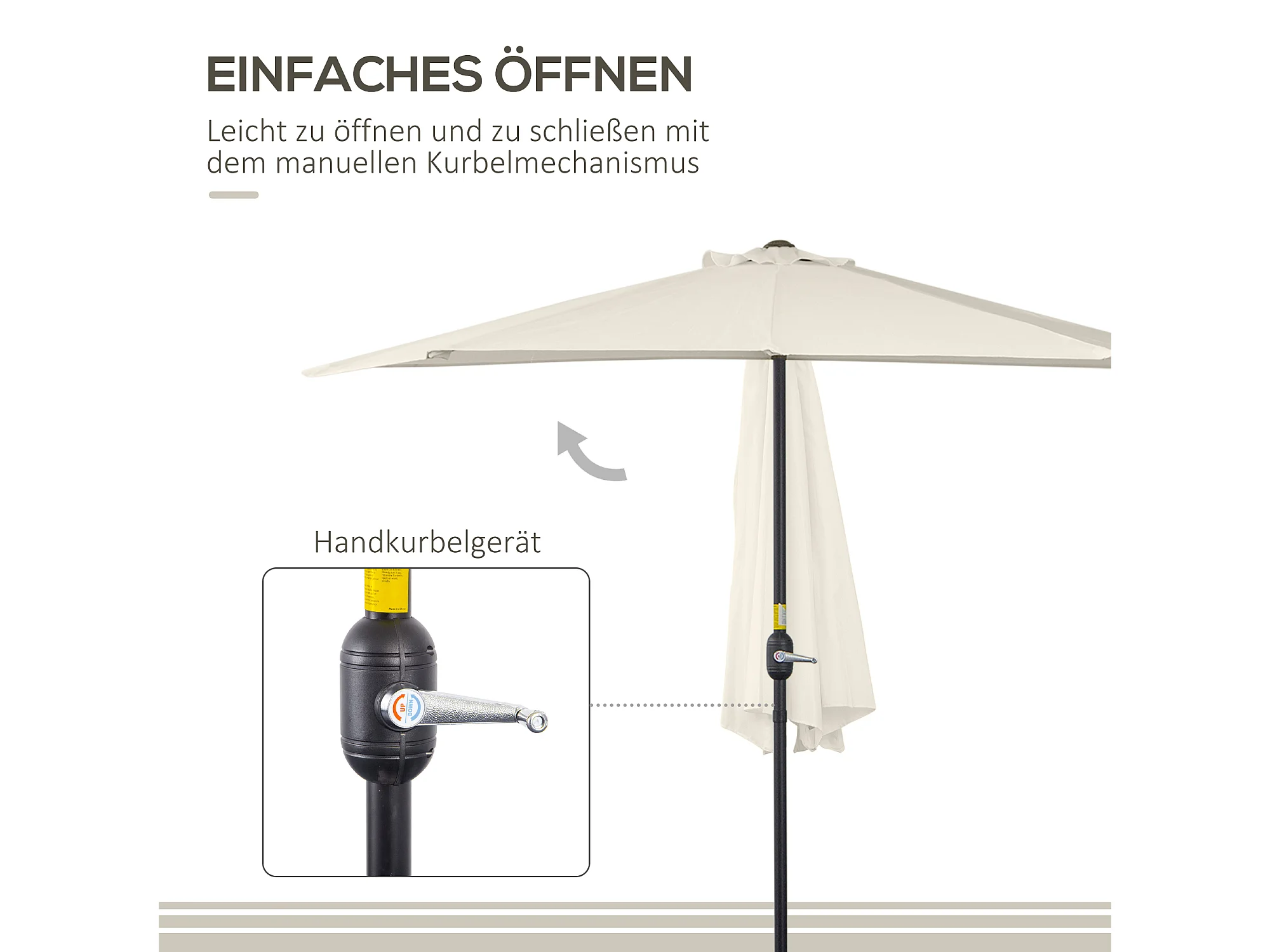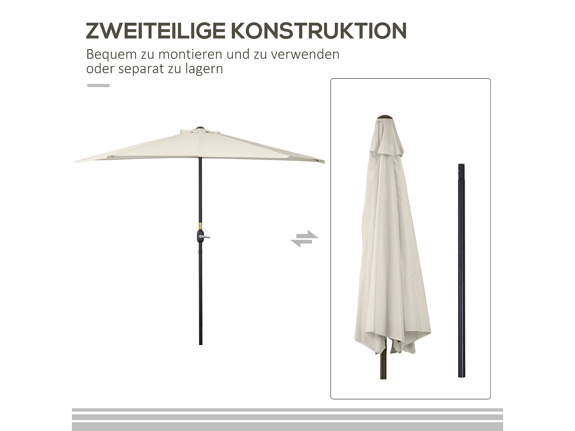 Halfronde parasol met slinger, metaal, crème en zwart, UV-bescherming (293x150x249cm)
