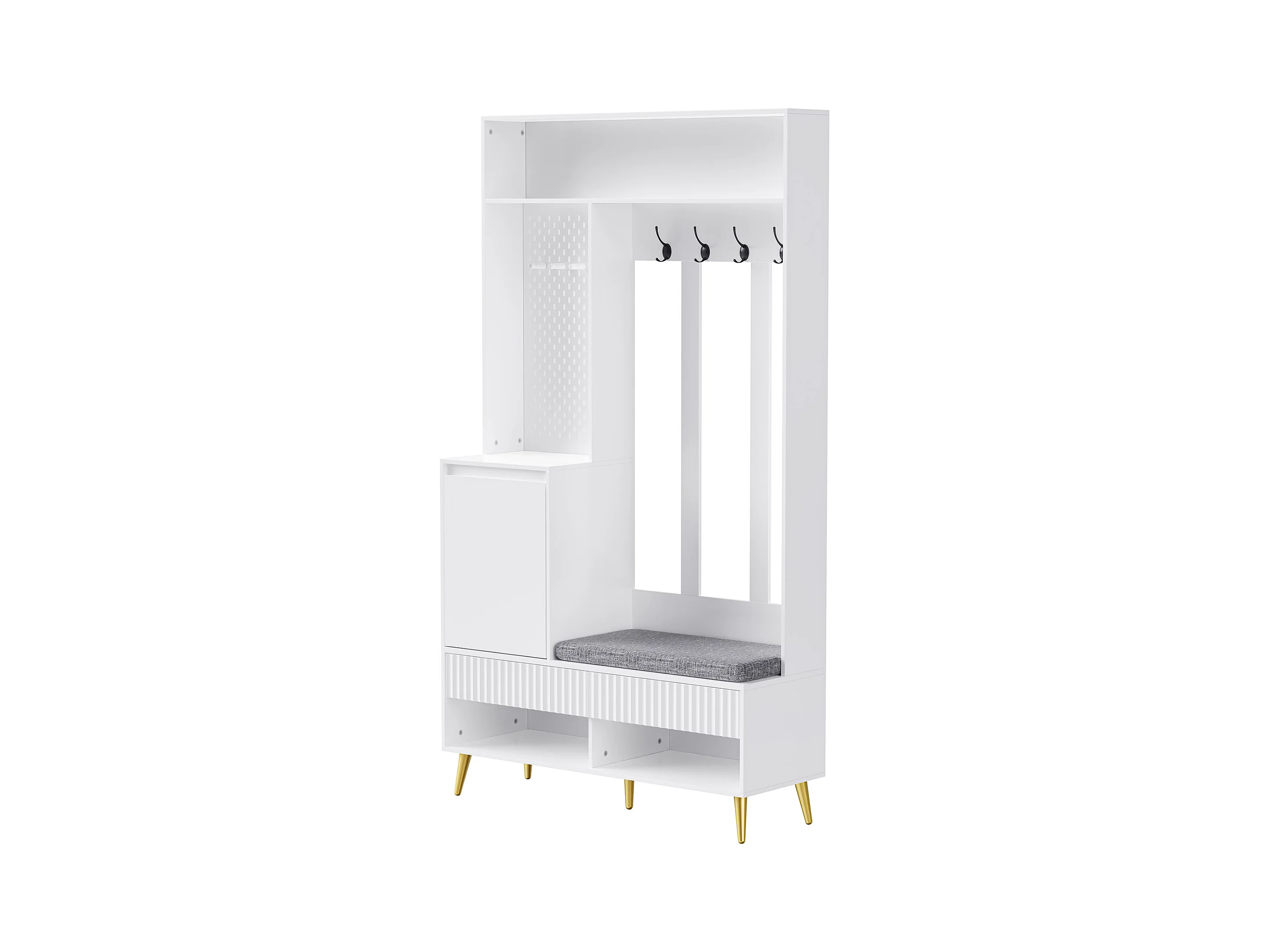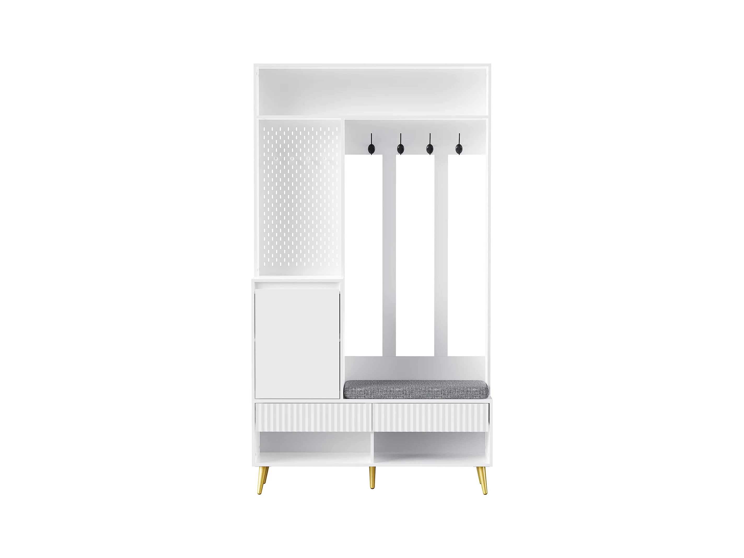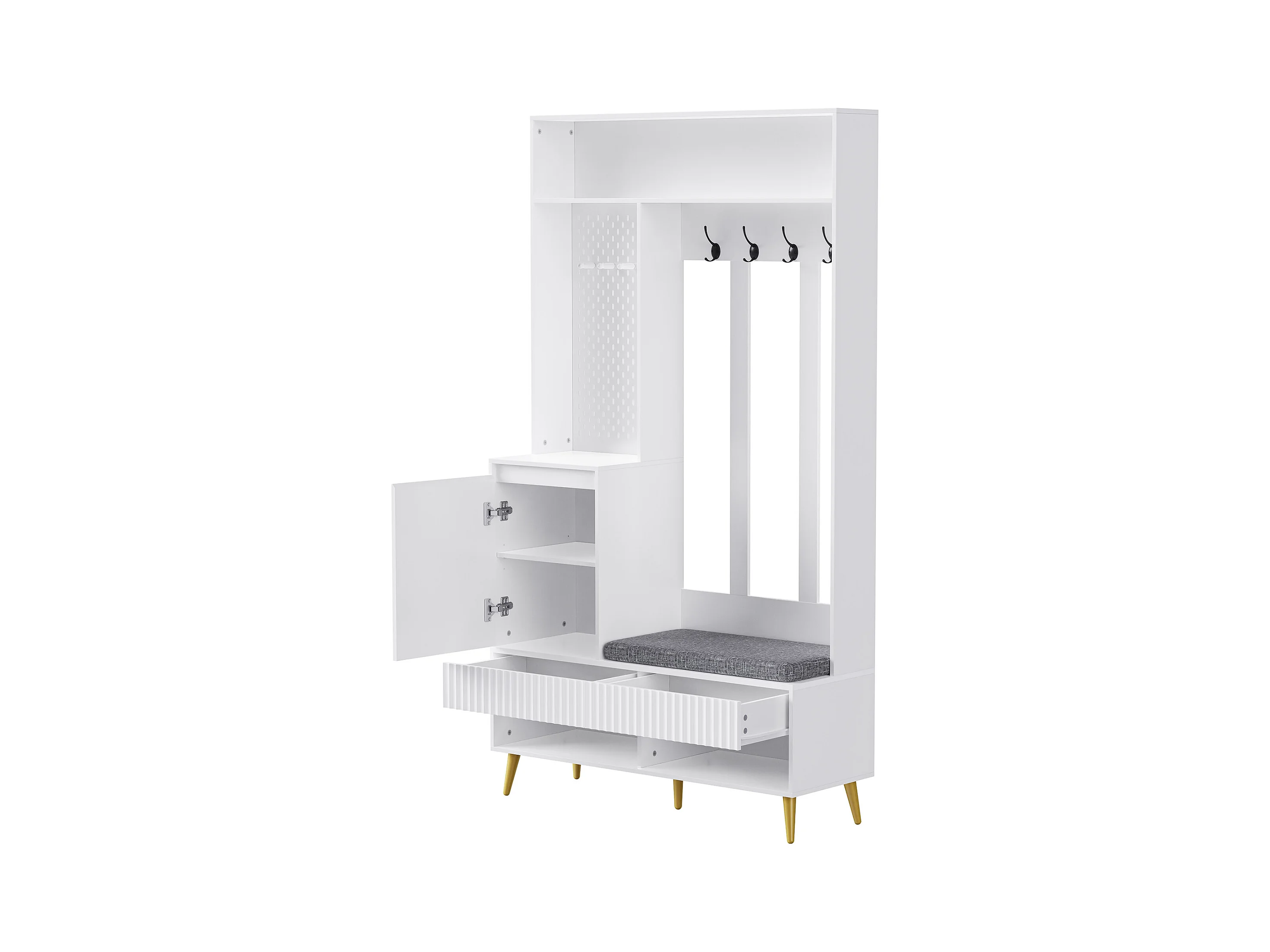 Halmeubel met bank, kapstok, planken en lades, 4 haken, 1 deur, wit, (100x35x180 cm)