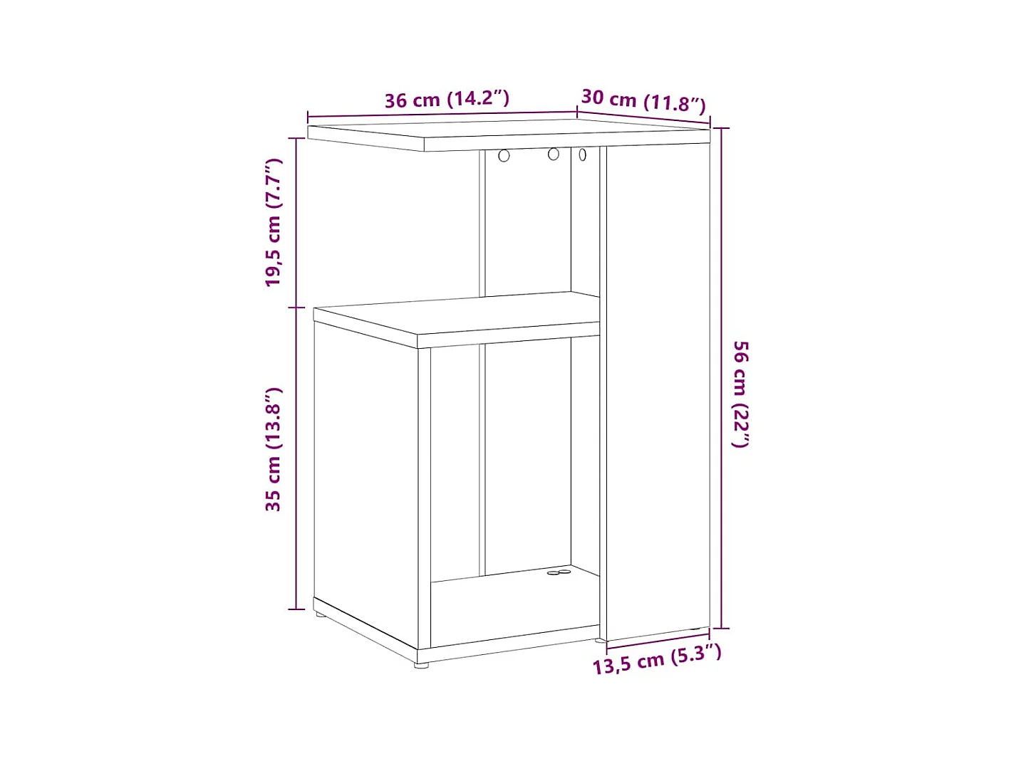 Handgemaakte eikenhouten bijzettafel 50x26x50 cm van bewerkt hout