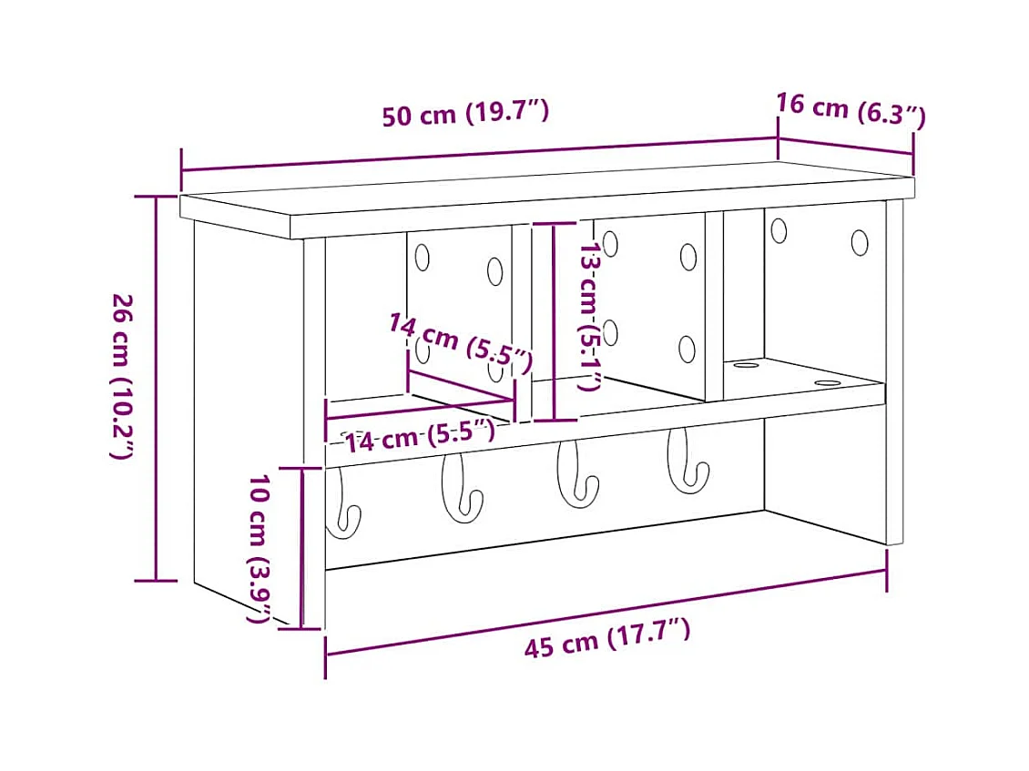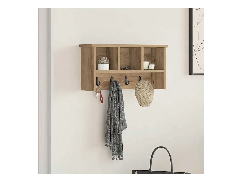 Handgemaakte eikenhouten wandkapstok 50 x 16 x 26 cm