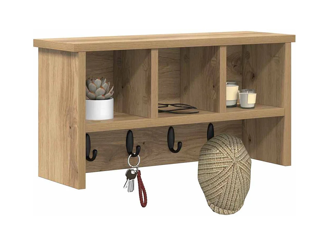 Wandkapstok met deur, handgemaakt eikenhout, 50 x 20 x 30 cm