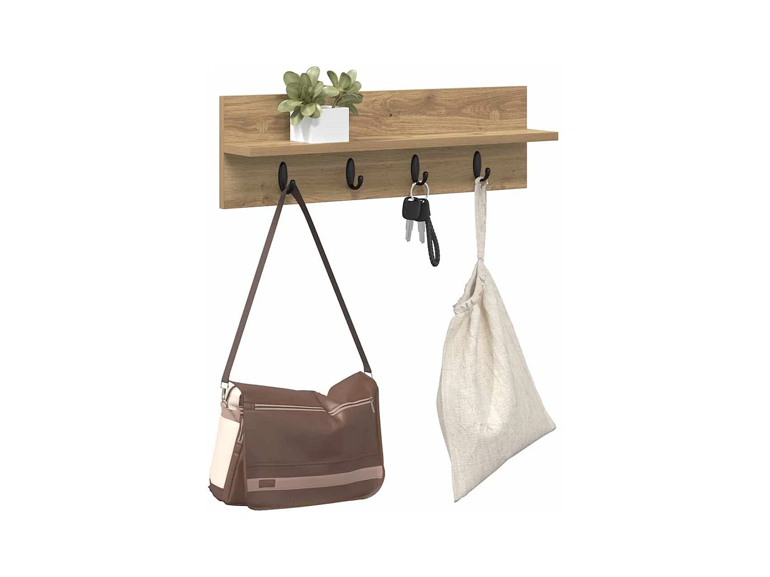 Handgemaakte eikenhouten wandkapstok 60 x 10,5 x 18 cm