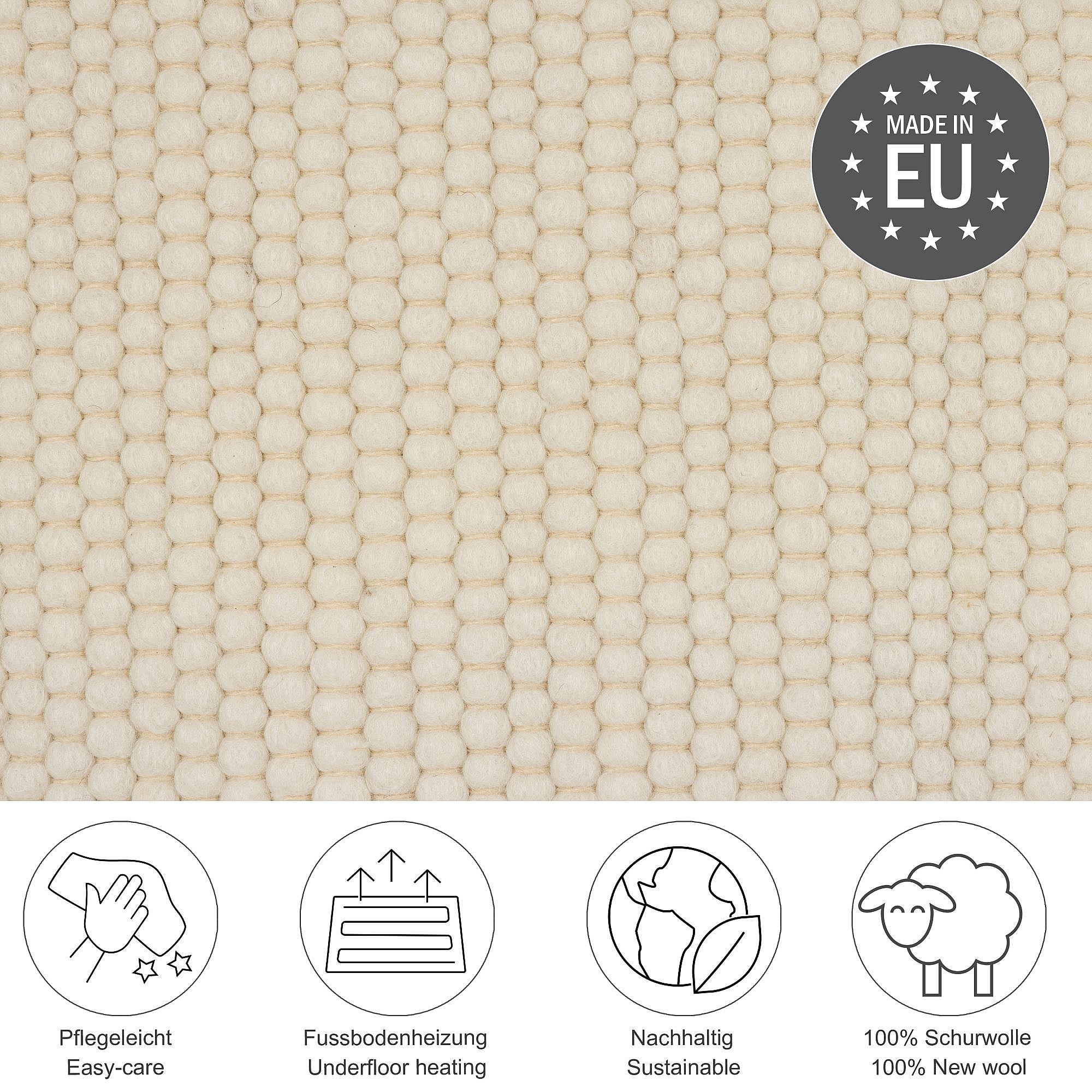 Handgeweven omkeerbaar wollen tapijt 120x180 cm natuurlijk wit Alpen