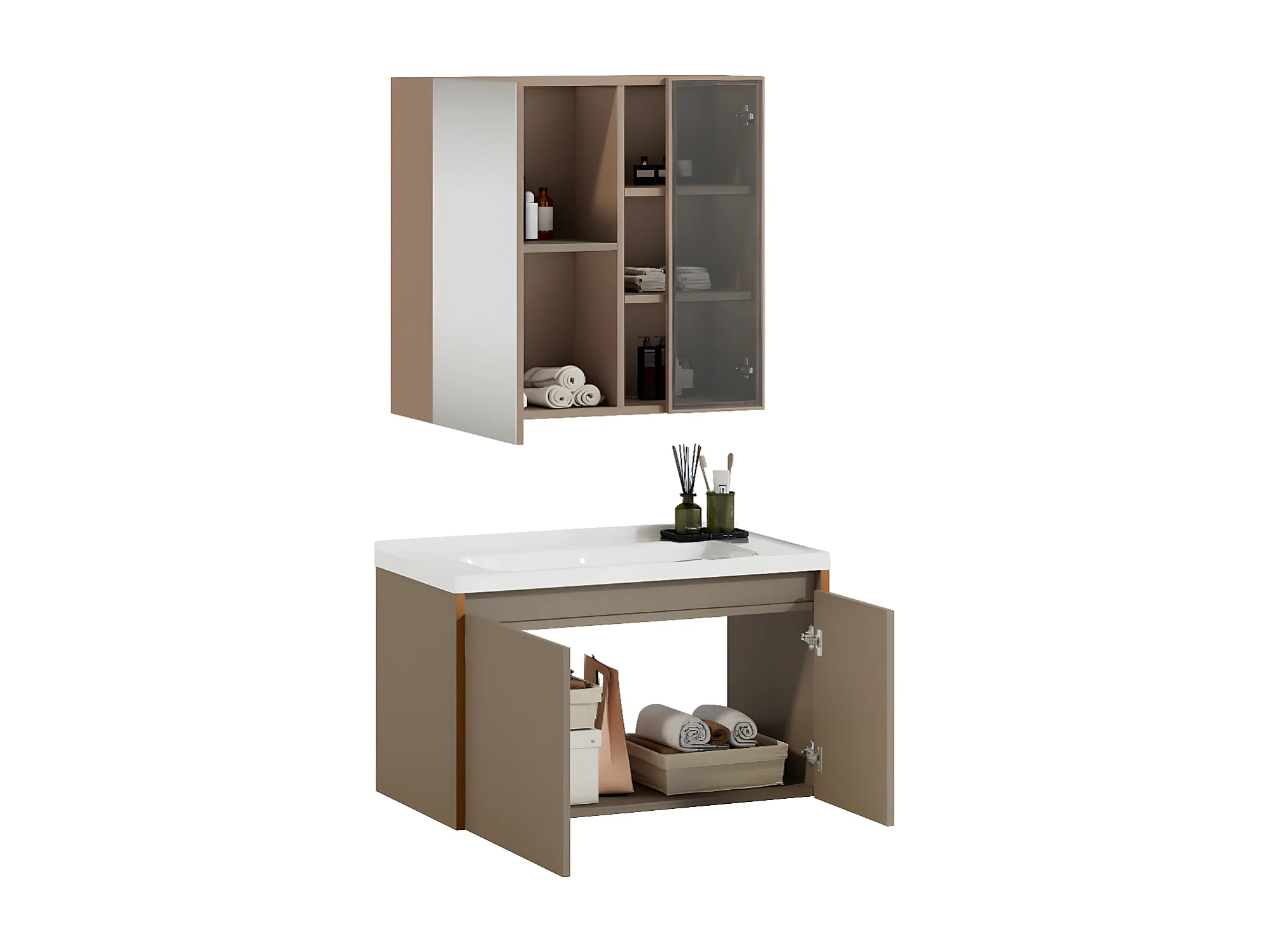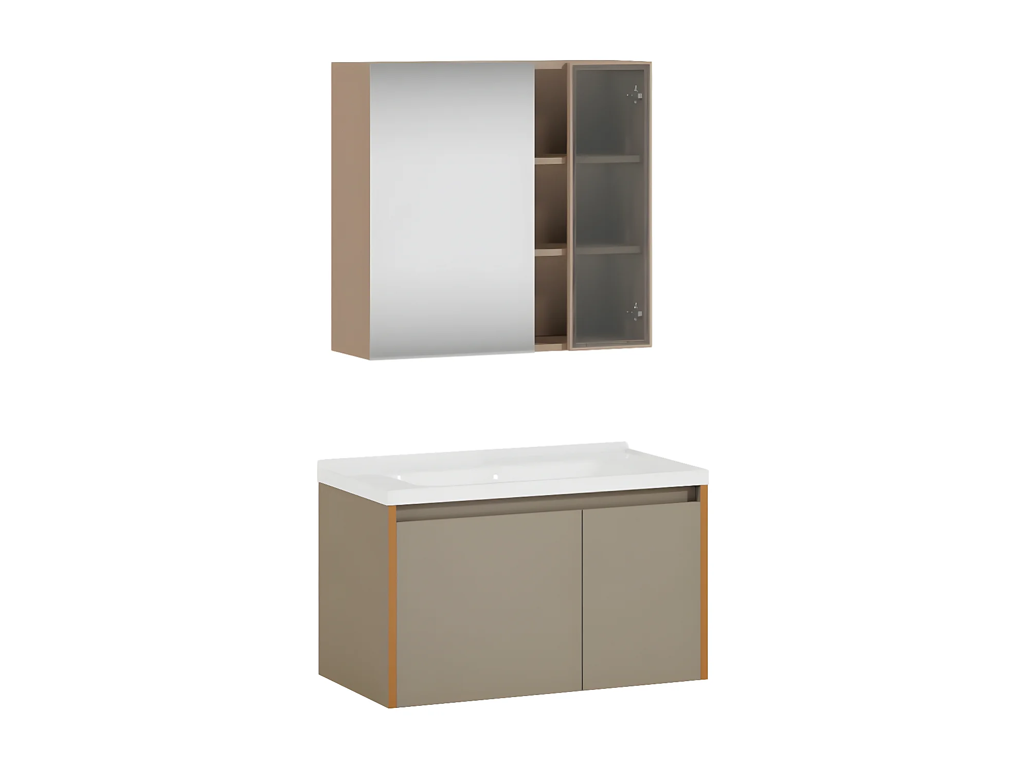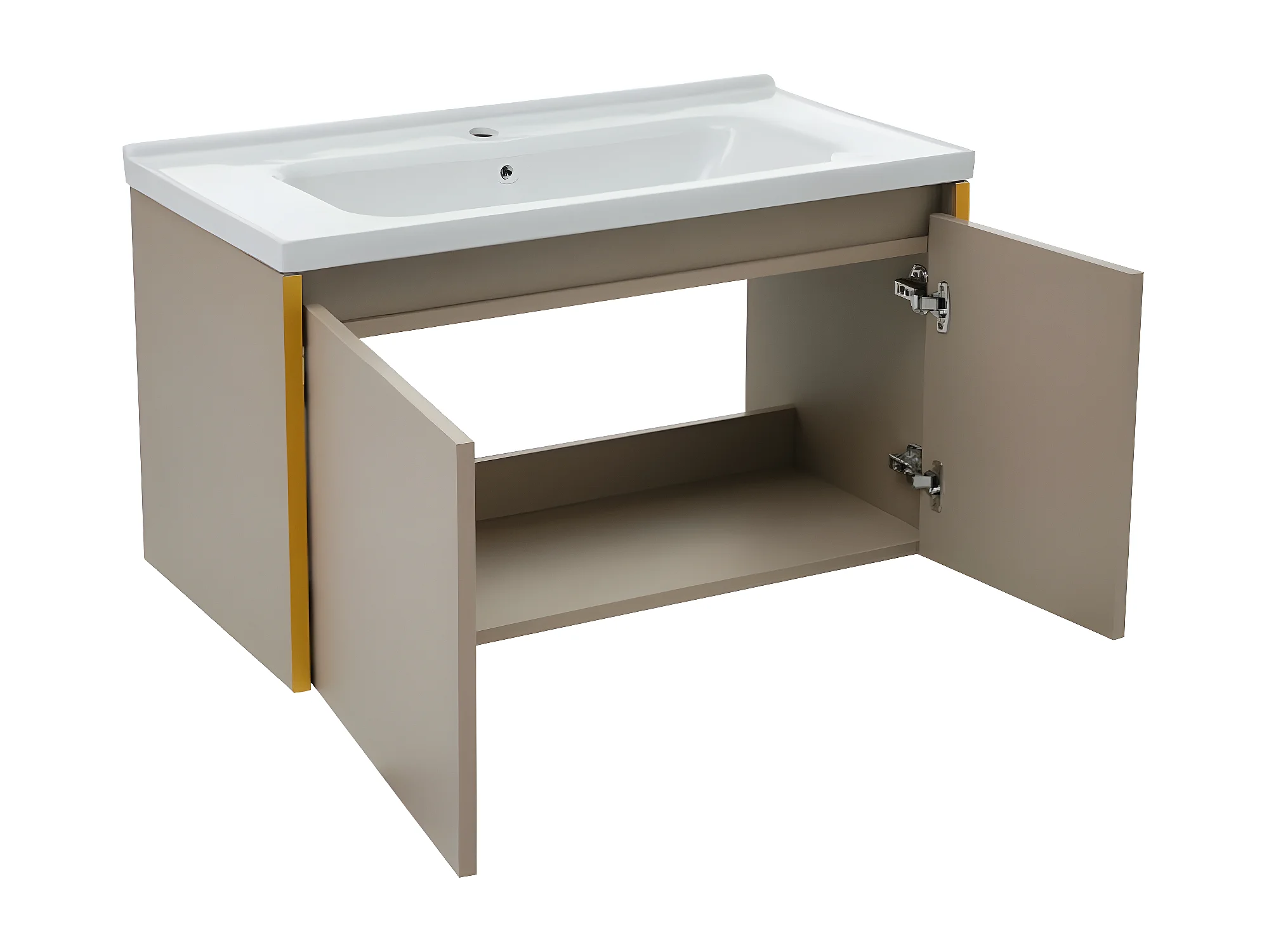 Hangend wastafelmeubel van 90 cm met keramische wastafel, lichtbruin