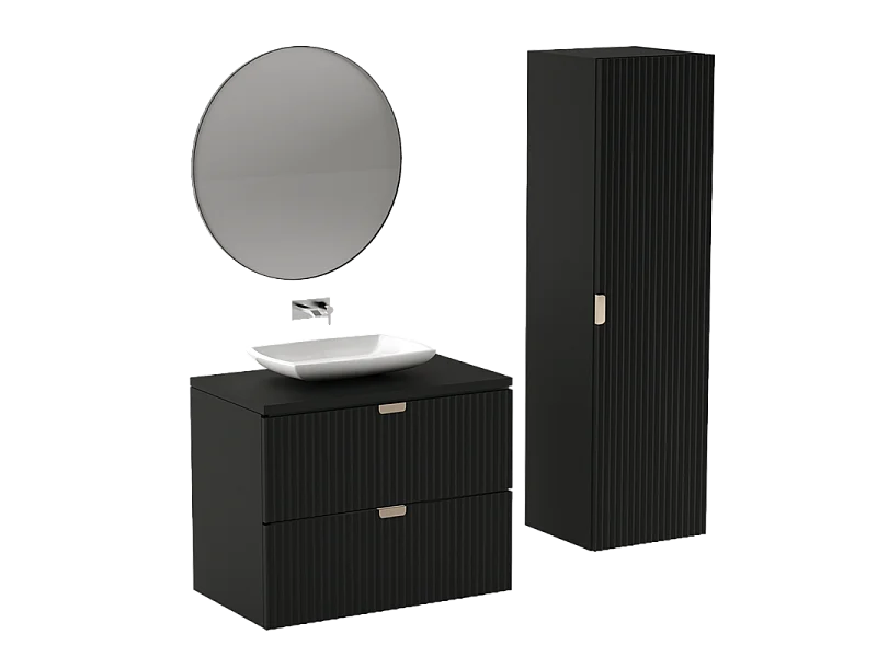 Hangende badkamerkolom WENA, gecanneleerde fronten, Willy, 120x33x33 cm, Zwart