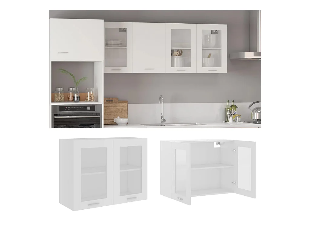 Hangende vitrinekast Wit 80x31x60 cm Bewerkt hout
