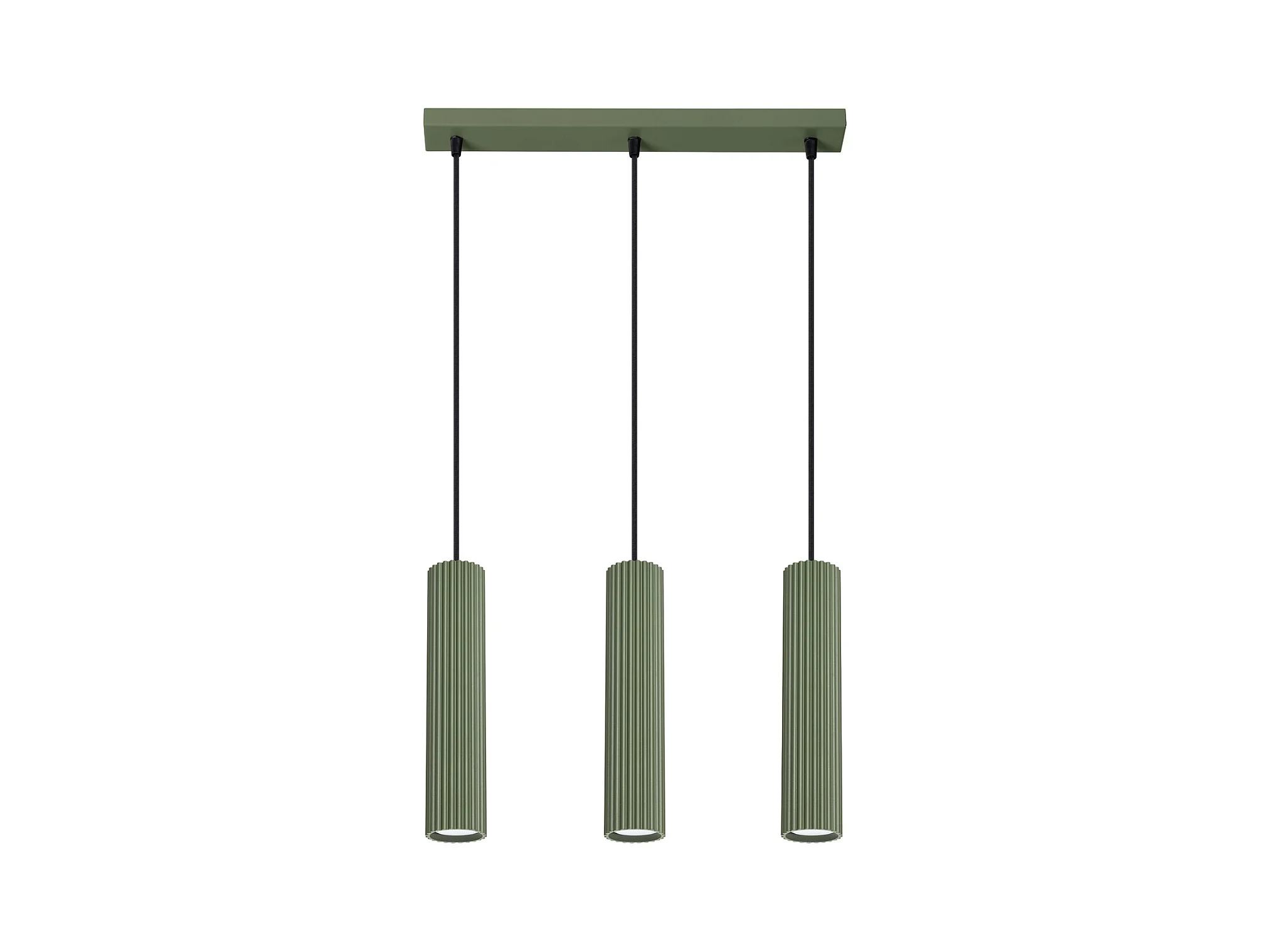 Hanglamp Toris zolder van - 3 lichtbronnen 4000K - L.45 x H.98 cm - olijfgroen