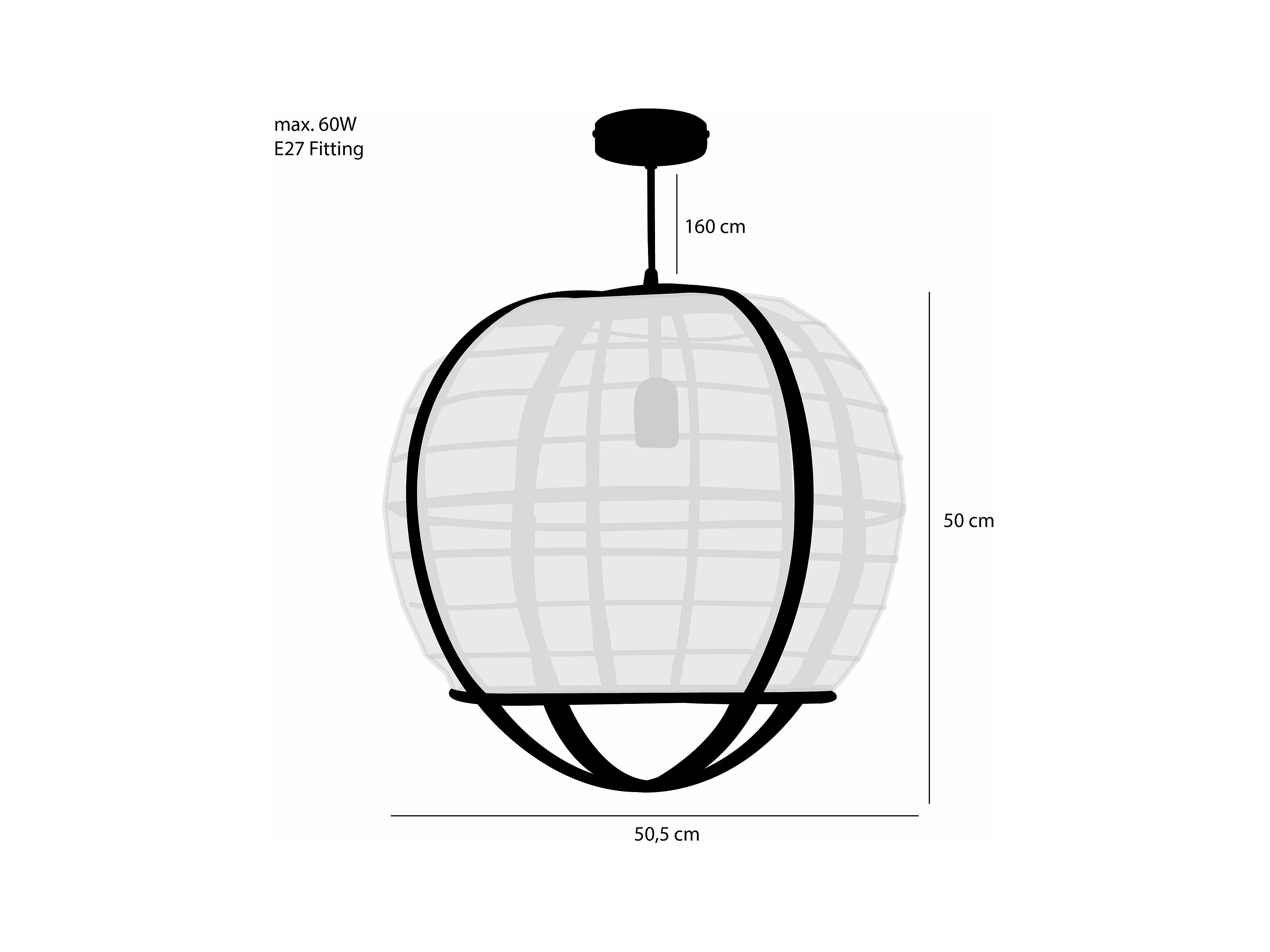 Hanglamp van linnen en bamboe en multiplex - Ø50,5 x 50 - Off white - PELLA