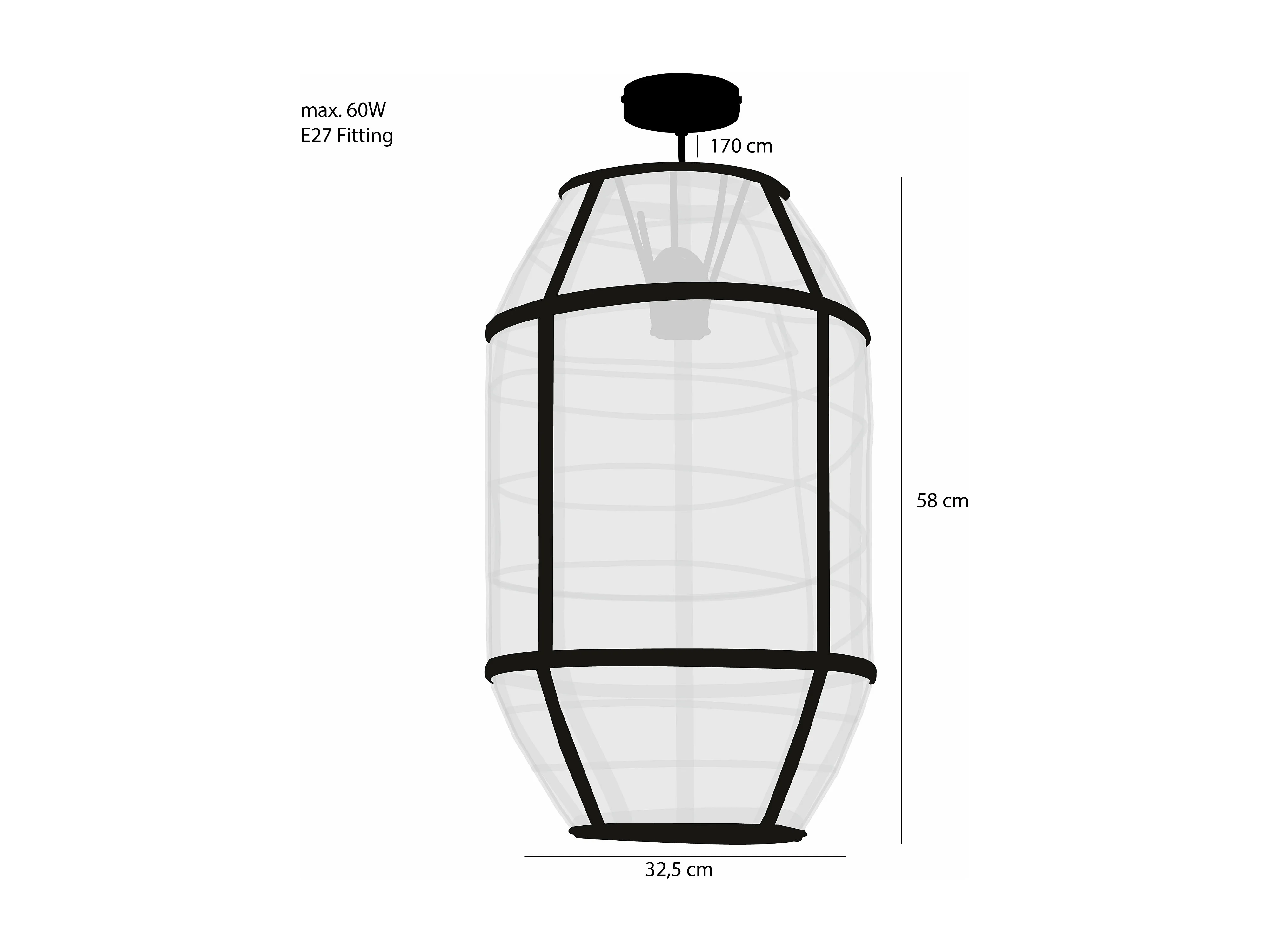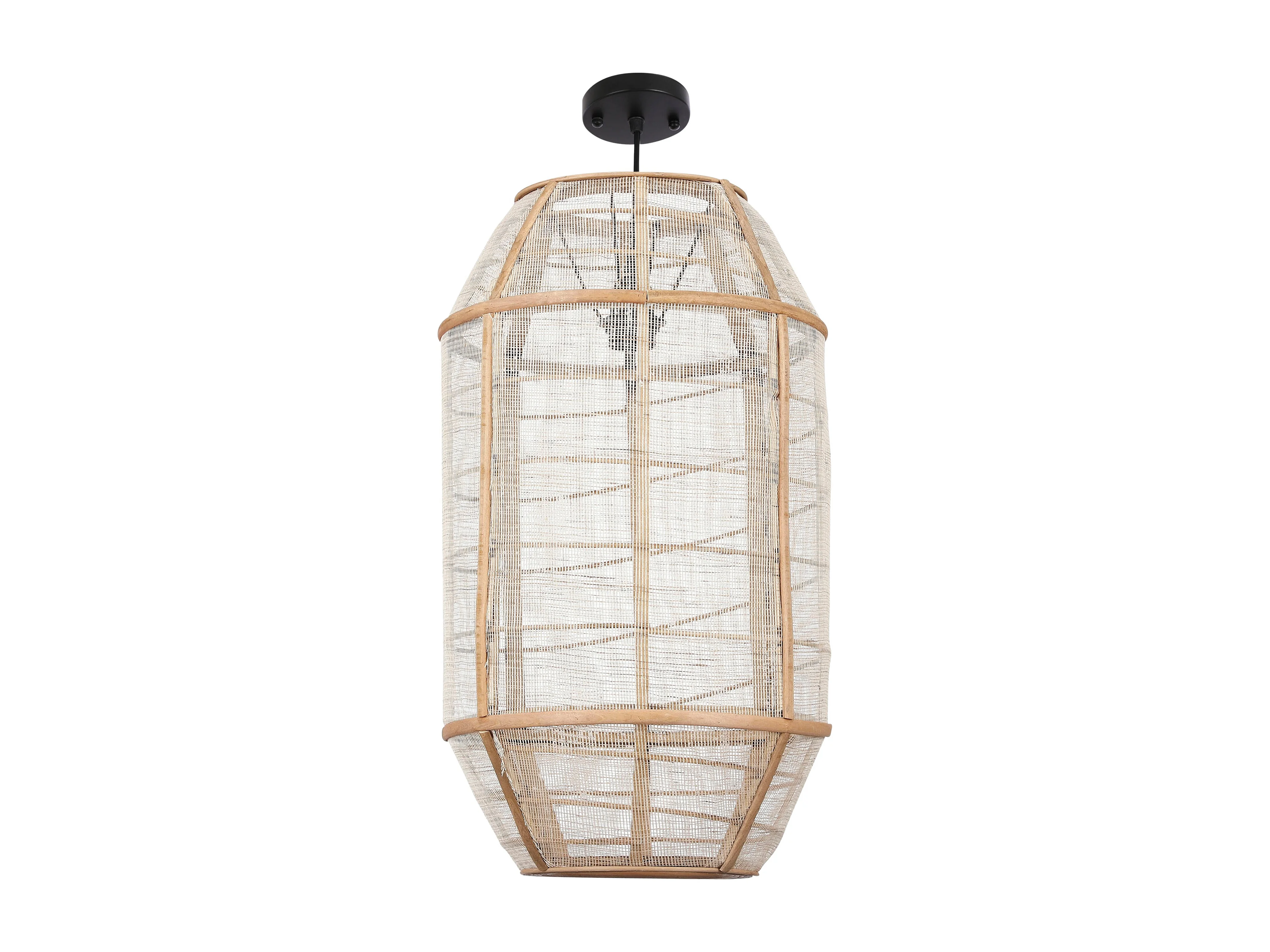 Hanglamp van linnen en bamboe en naaldhout en multiplex en ijzer - 58 x Ø32.5 - Beige - PELLA