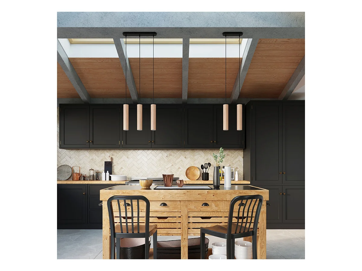 Hanglampen Silno Scandinavisch van - 2 lichtbronnen 4000K - L.30 x H.90 cm - natuurlijk hout