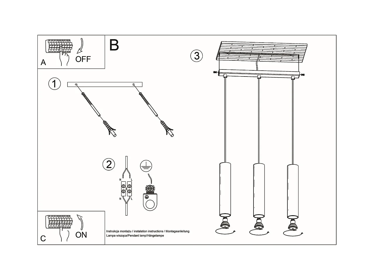 Hanglampen Toris modern van - 3 lichtbronnen 4000K - L.20 x H.110 cm - zwart