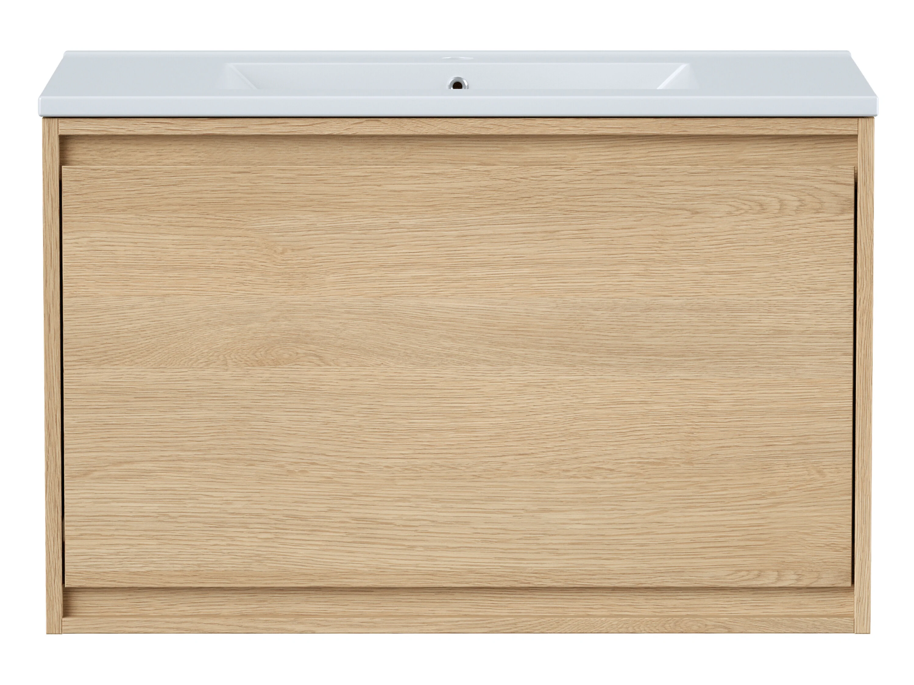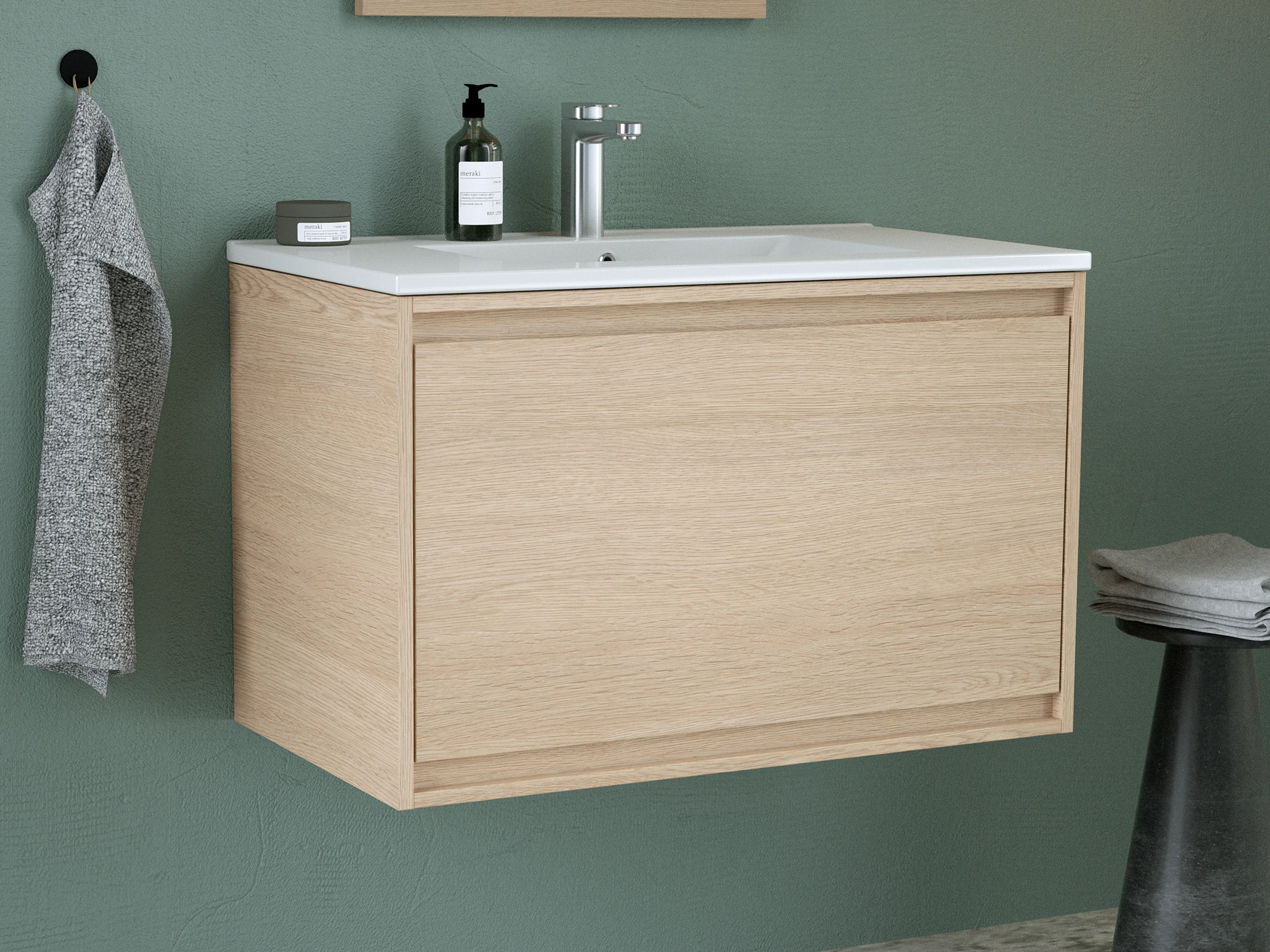 Hangmeubel voor badkamer met inbouwwastafel - Eikenfineer - 80 cm - MESLIVA