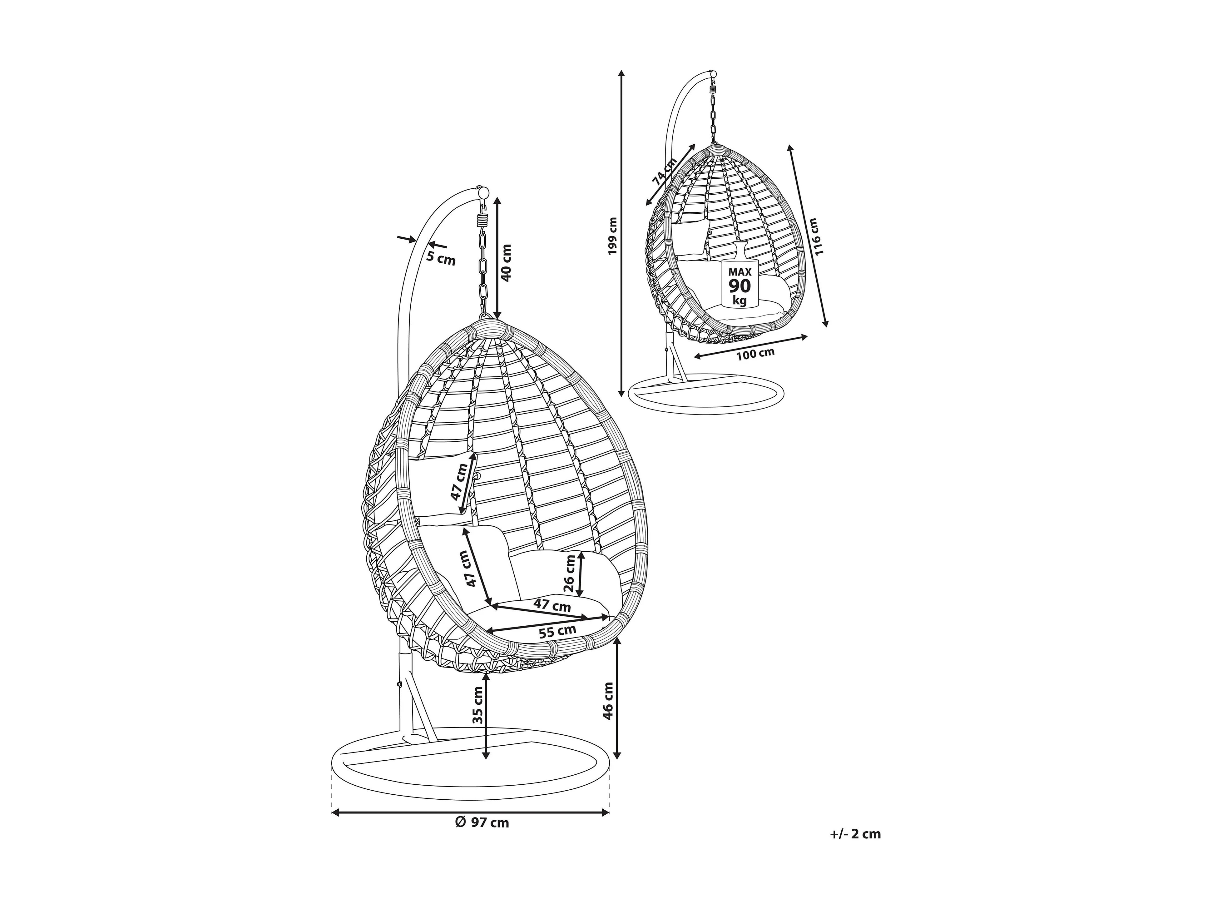 Hangstoel met standaard TOLLO Zwart