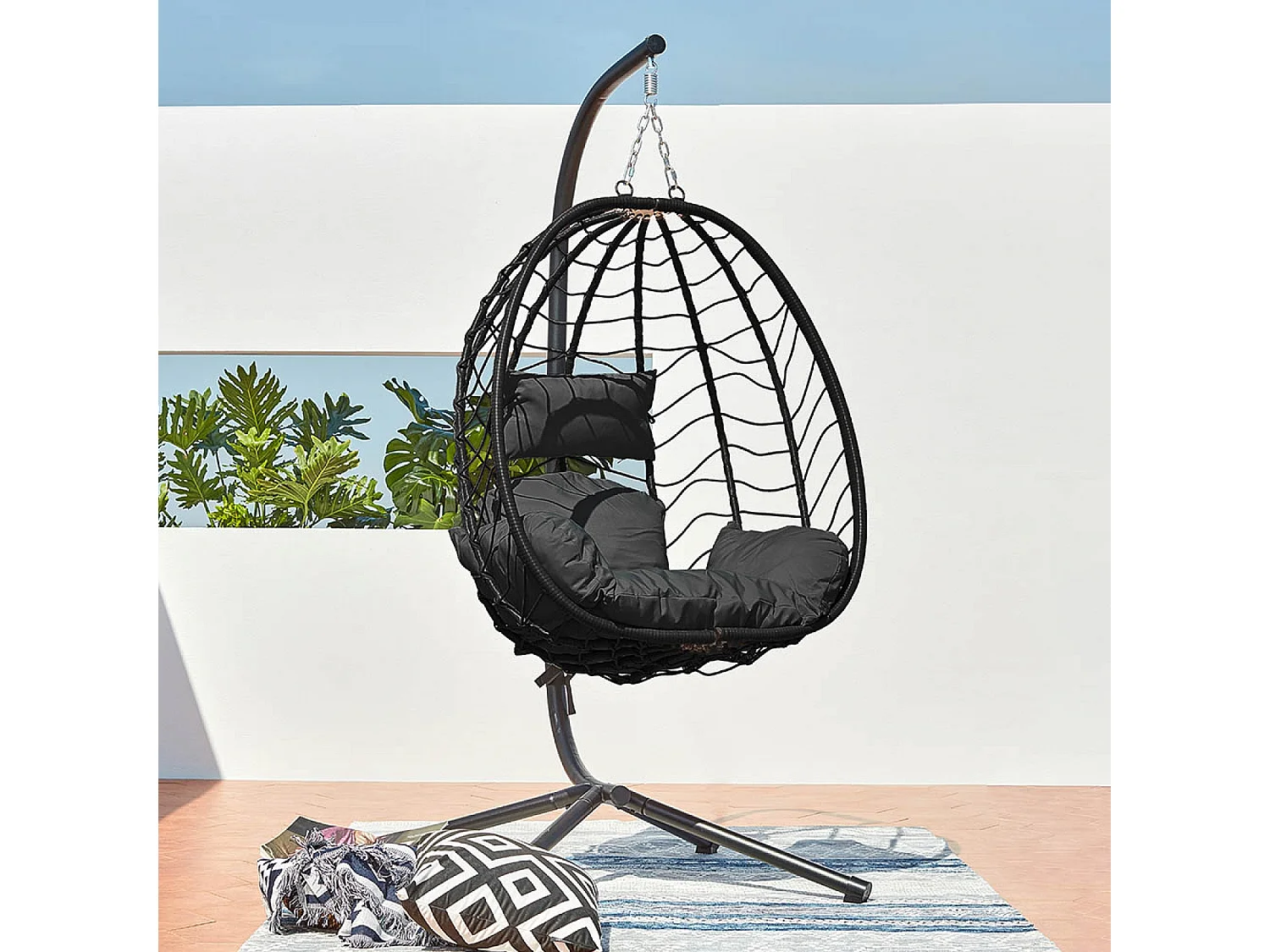 Hangstoel zwart van hars en staal LIMA - Comfortabel en trendy voor binnen en buiten