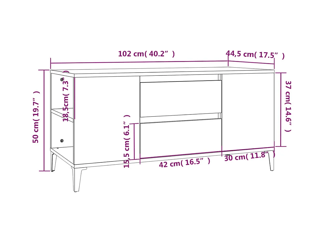 Hermiston Tv-meubel 102x44,5x50 cm bewerkt hout hoogglans wit
