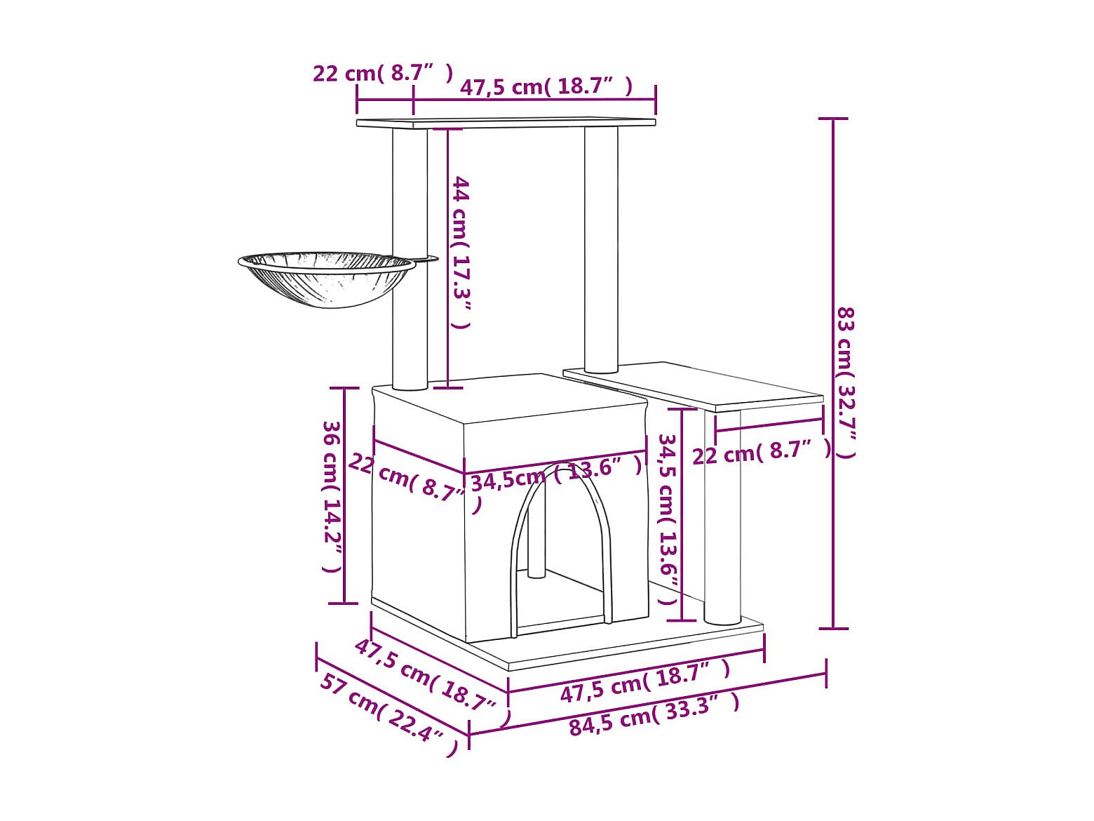 Hildborg Kattenmeubel met sisal krabpalen 83 cm donkergrijs