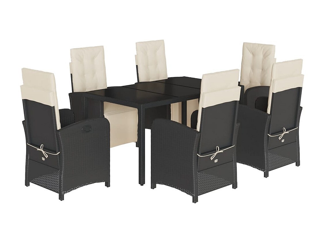 Vrikja 7-delige Tuinset met kussens poly rattan zwart