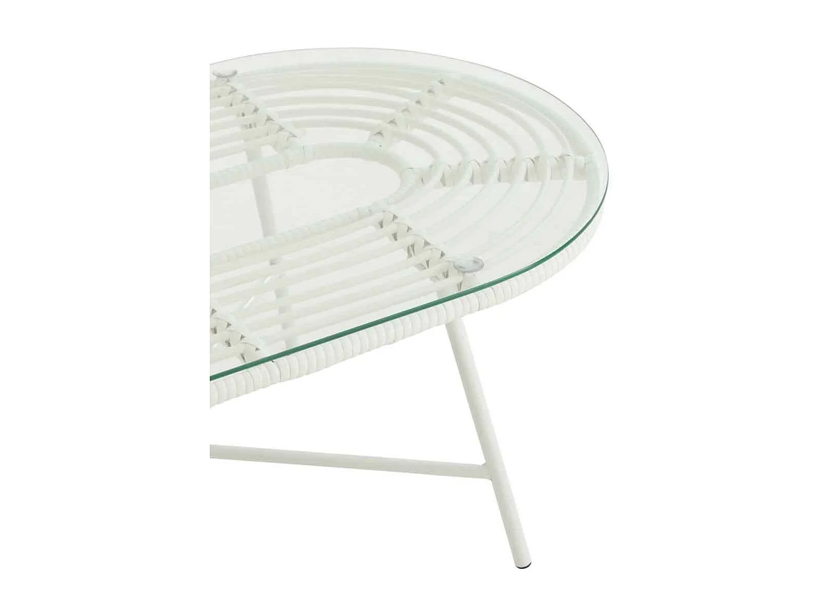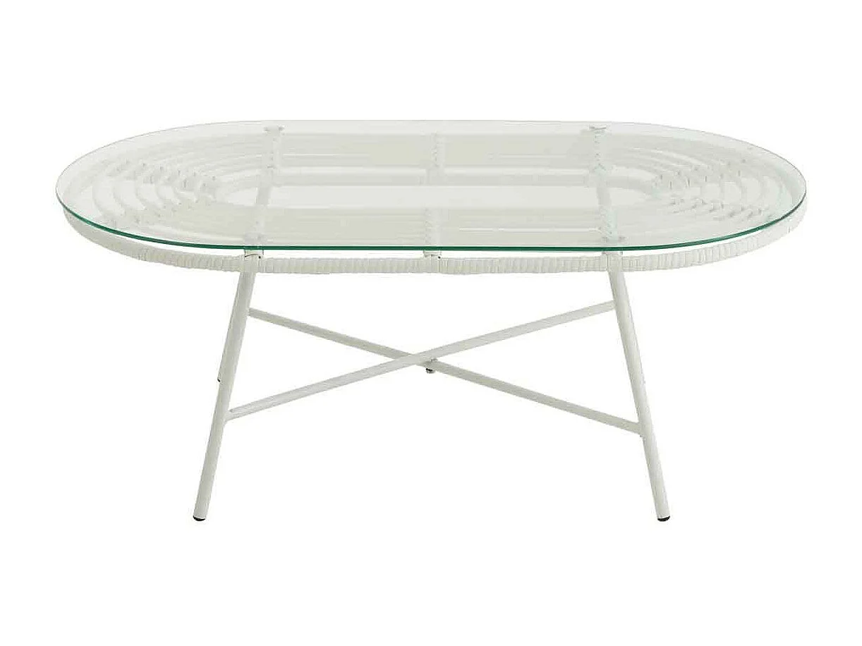 Hiro ovale tuintafel van metaal en wit glas L 90 cm