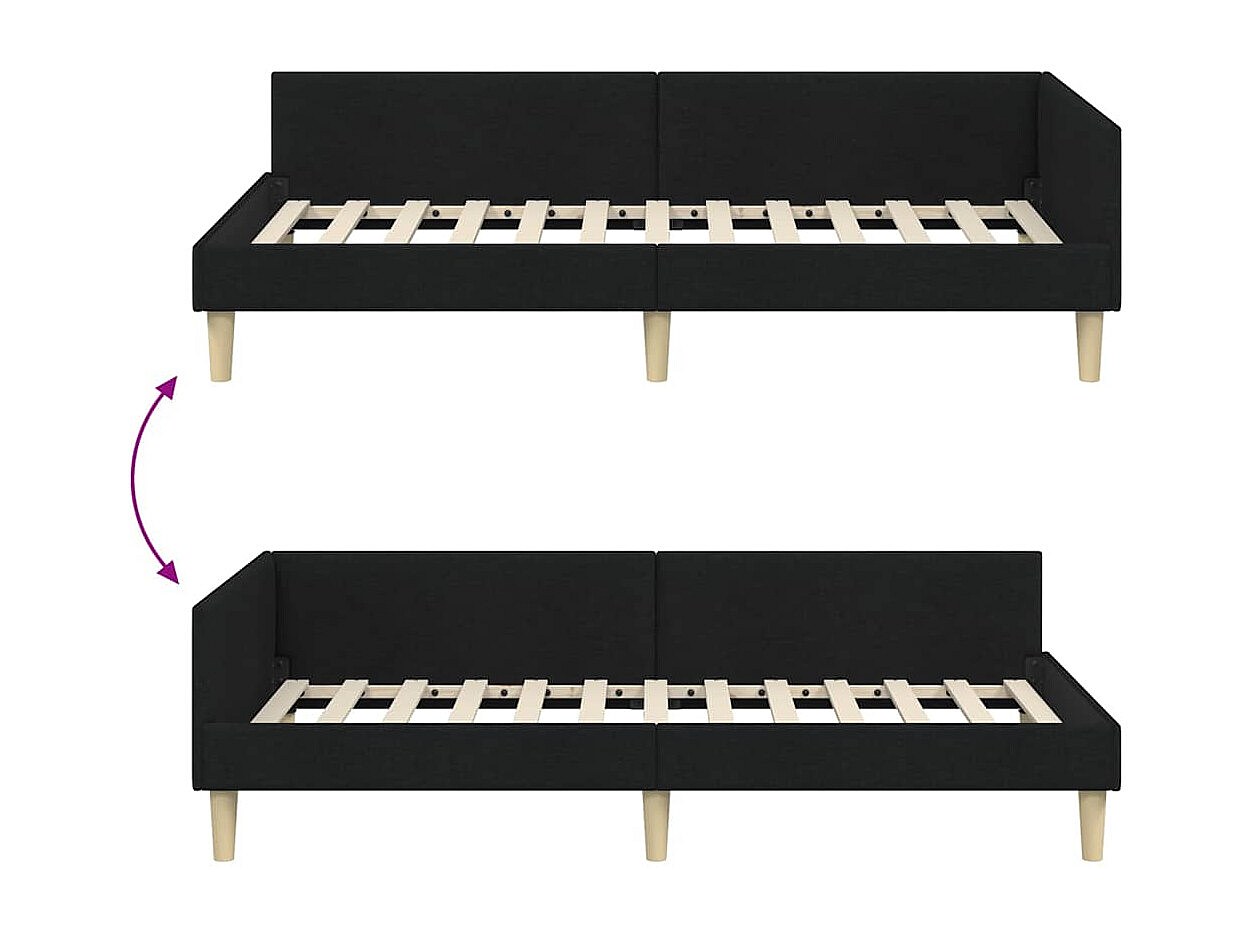 Hoek Bed Frame Zwart 100 x 200 cm Stof en Engineered Hout