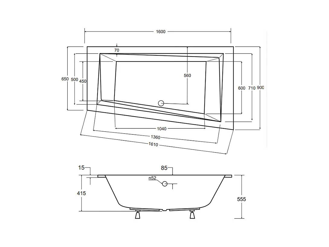 Hoekbadkuip INFINITY 170x110 rechts | Afvoer & poten GRATIS!