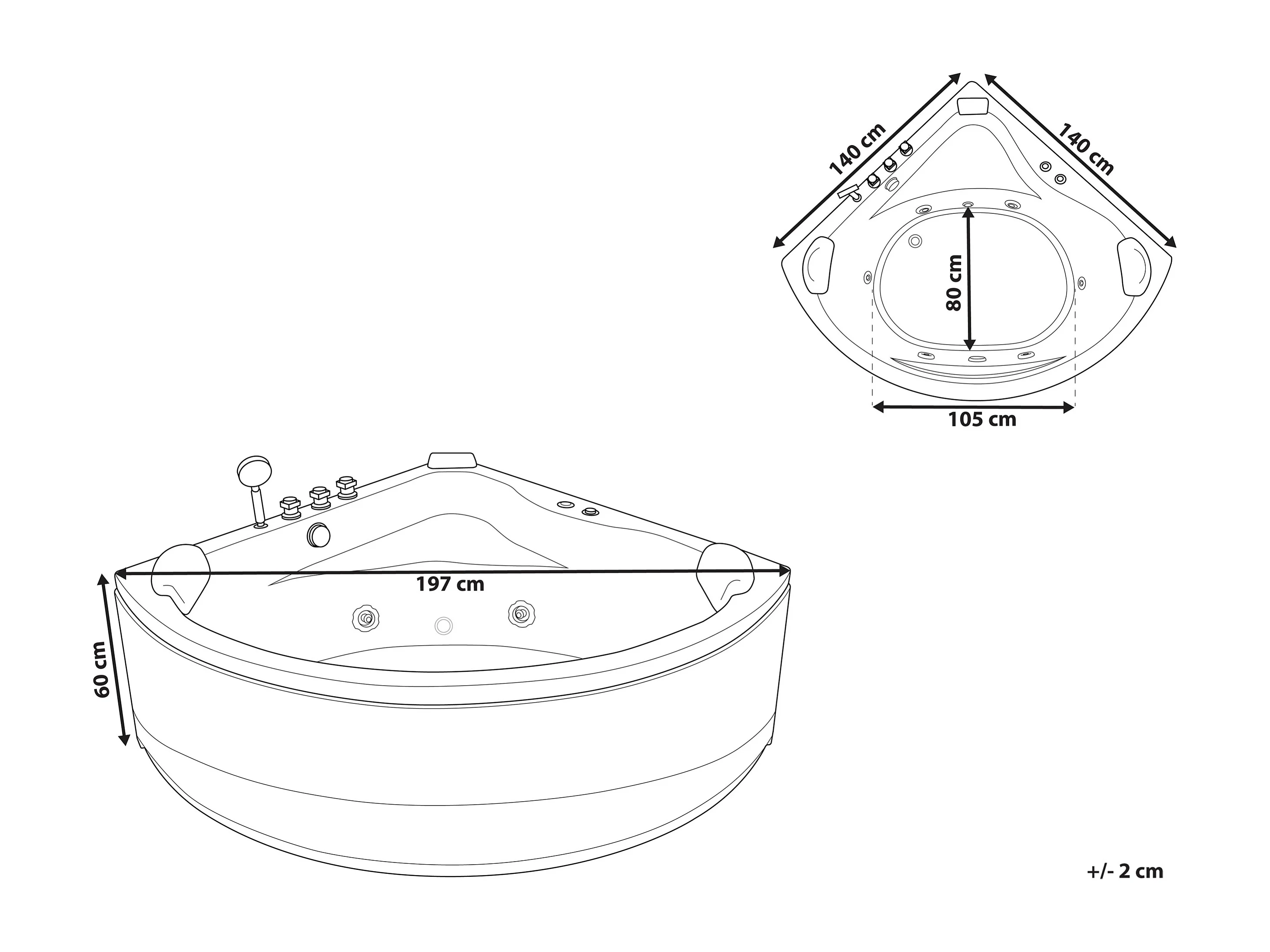 Hoek bubbelbad met LED BARACOA 197 x 140 cm Wit