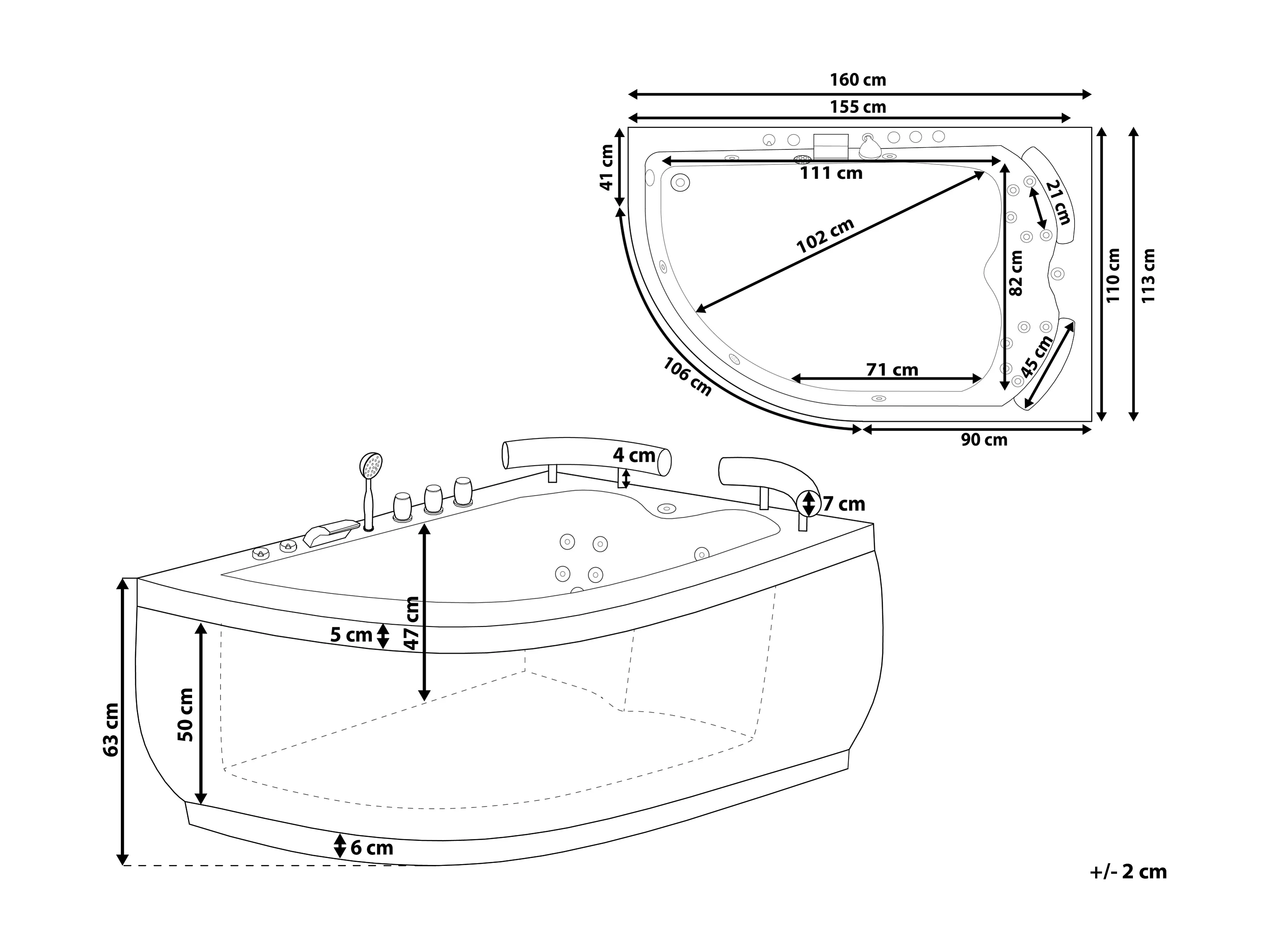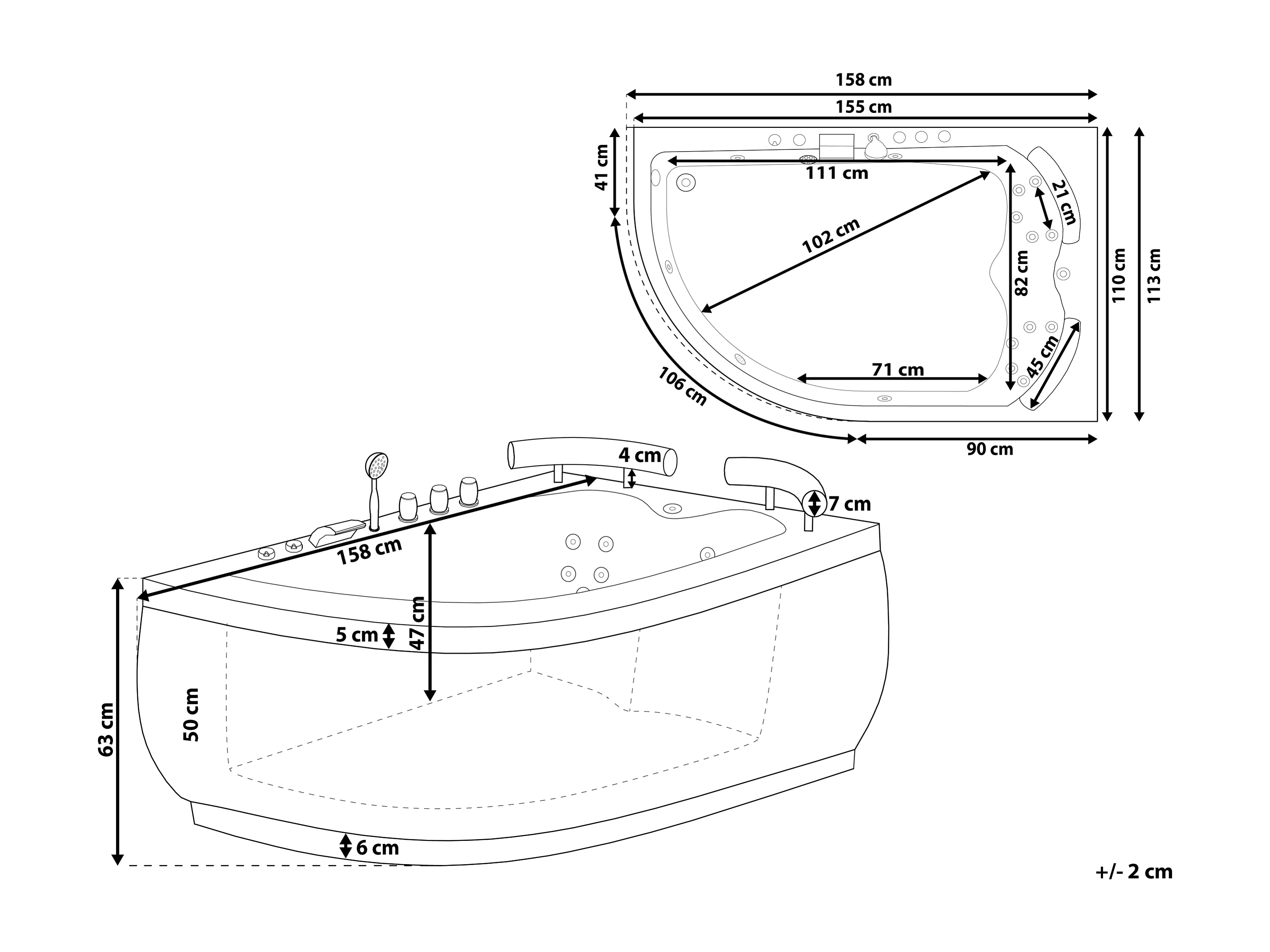 Hoek bubbelbad met LED PARADISO Linkerzijde 158 x 113 cm Wit