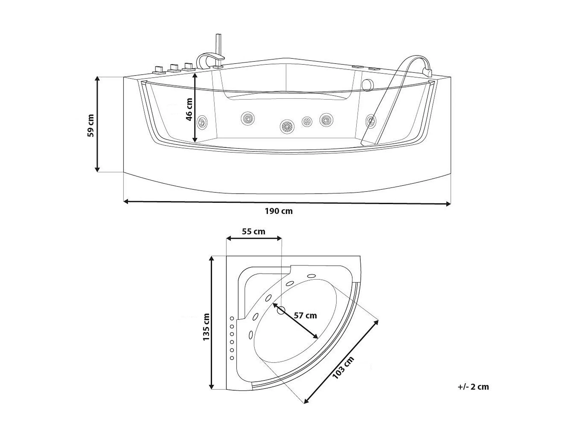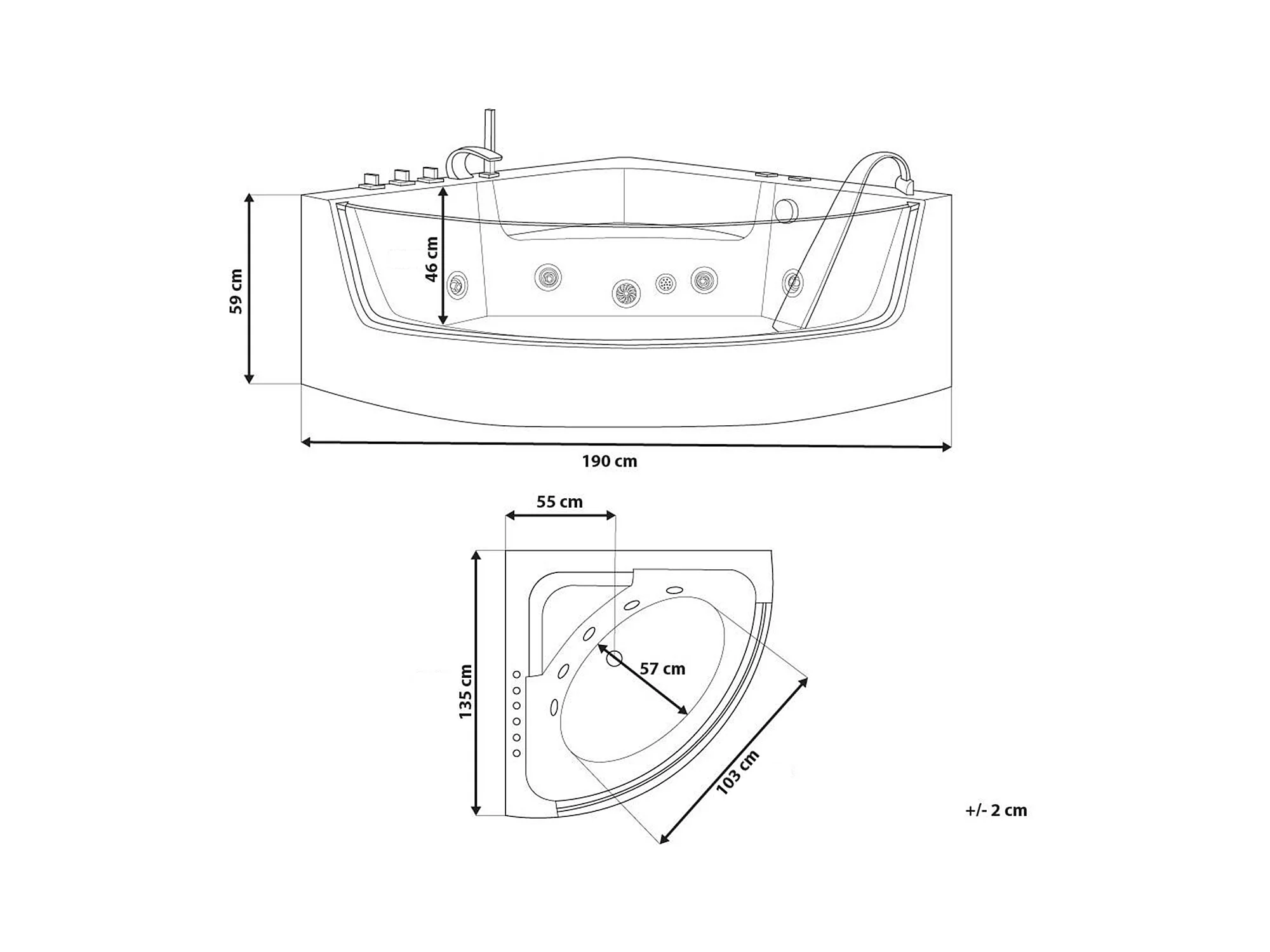 Hoek bubbelbad met LED MARINA 190 x 135 cm Wit