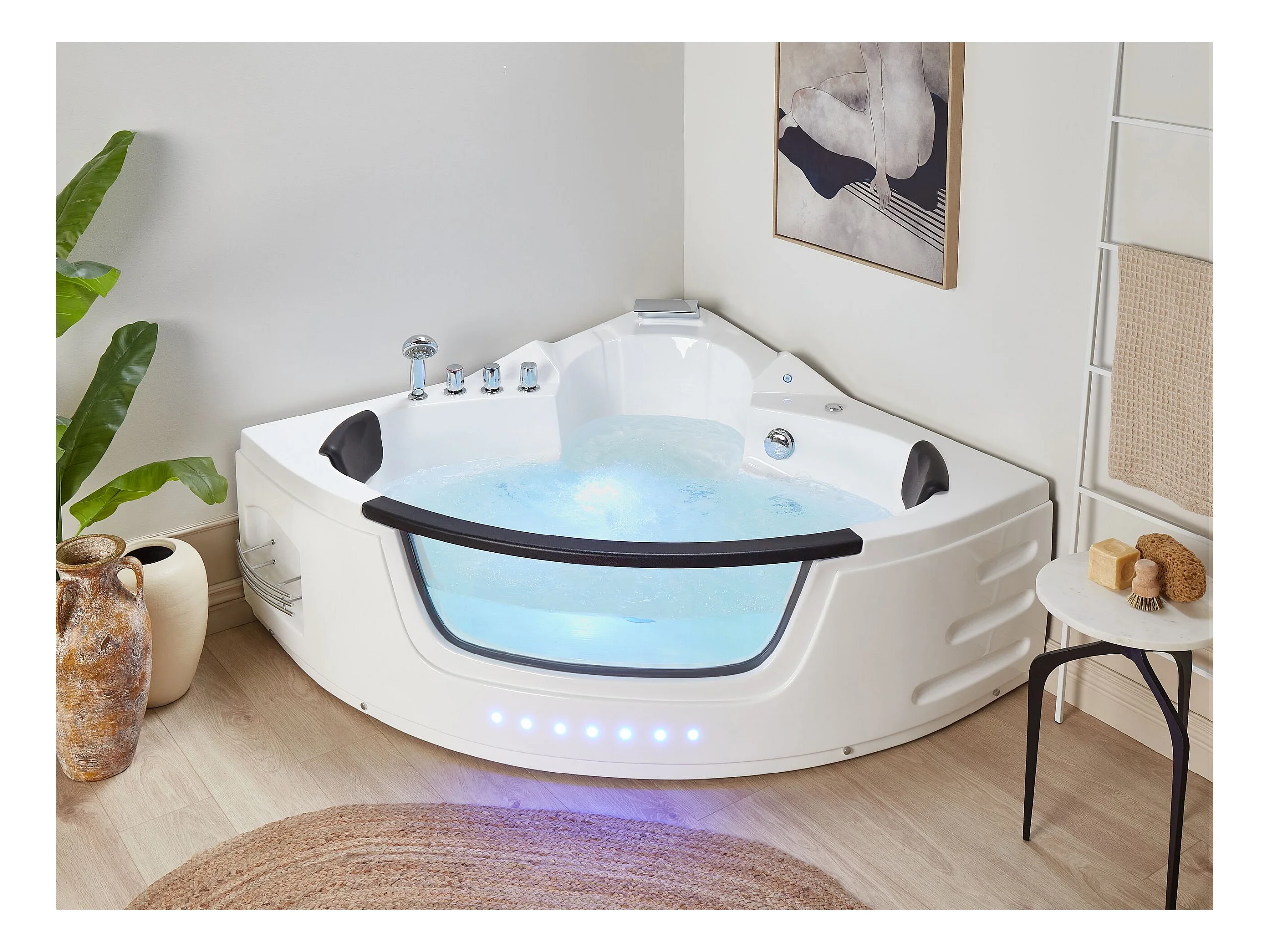 Hoek bubbelbad met LED MEVES 140 x 140 cm Wit