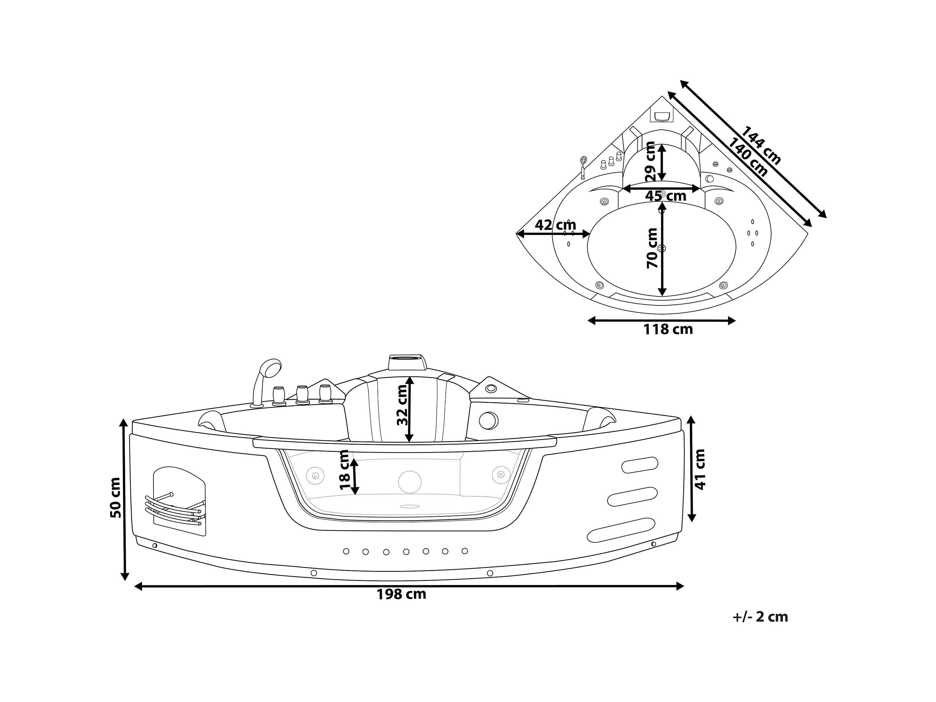 Hoek bubbelbad met LED MARTINICA 198 x 144 cm Wit