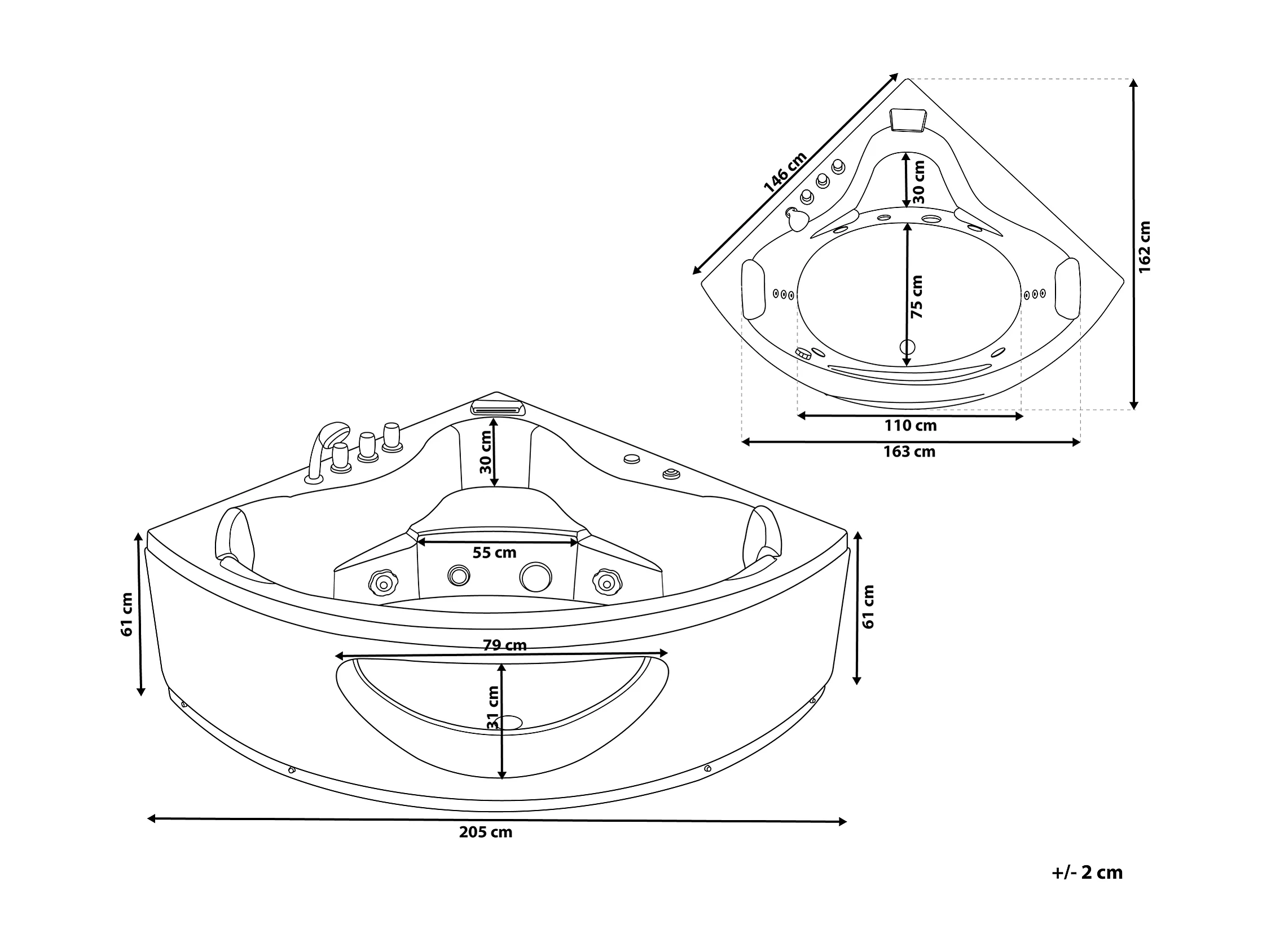 Hoek bubbelbad met LED TOCOA 205 x 146 cm Wit