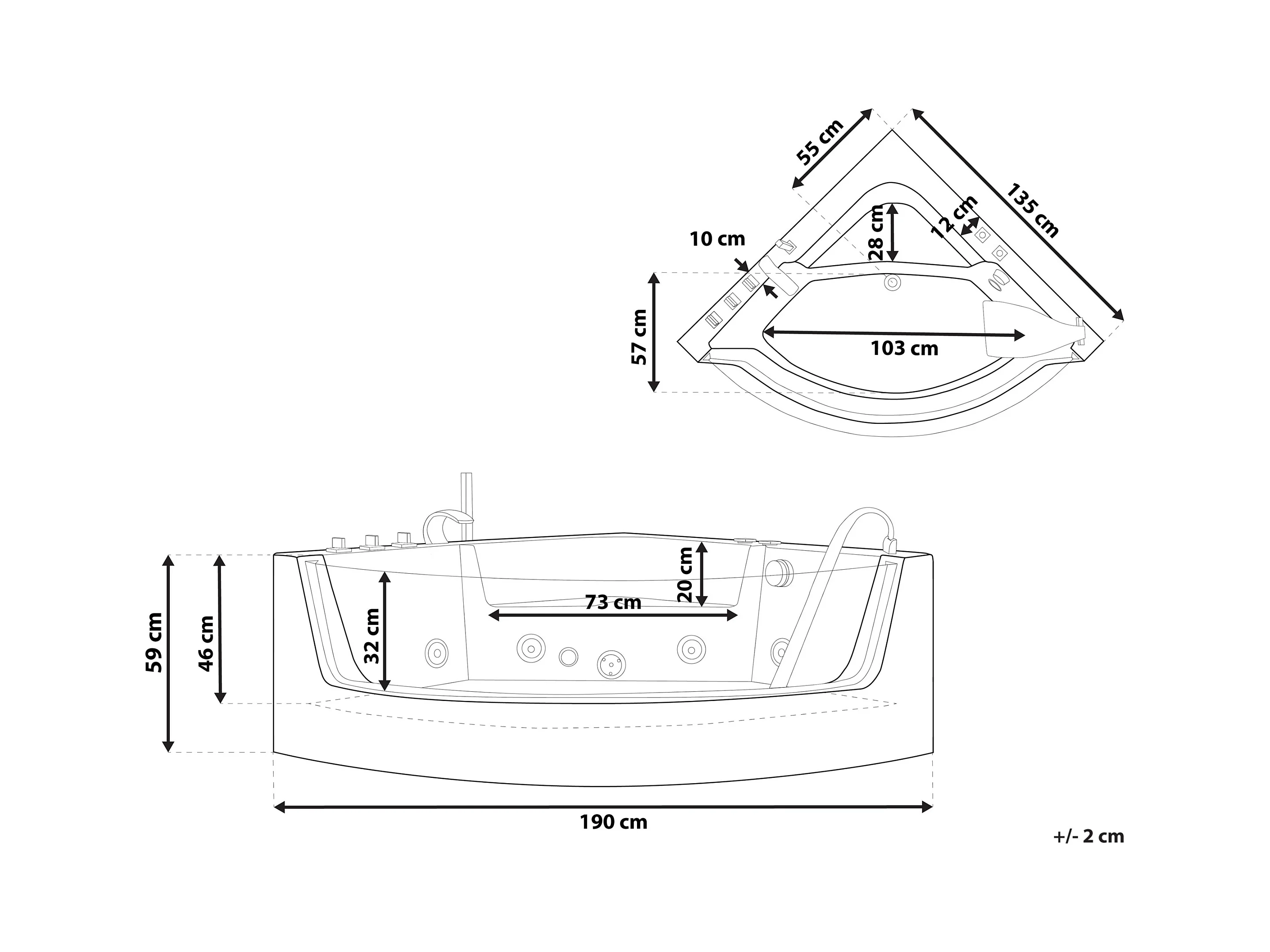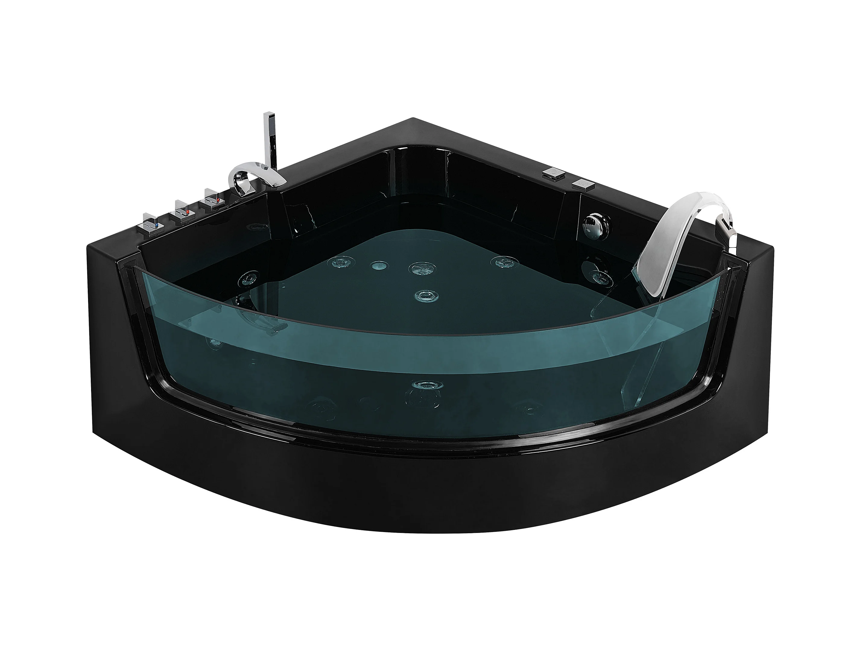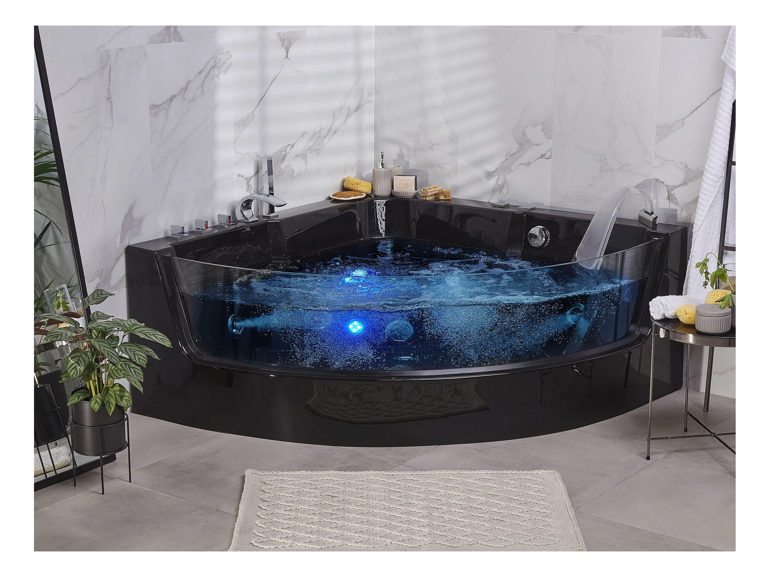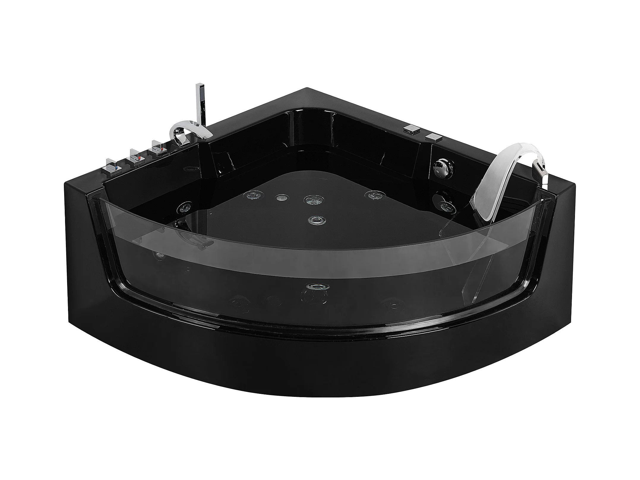 Hoek bubbelbad met LED MARINA 190 x 135 cm Zwart