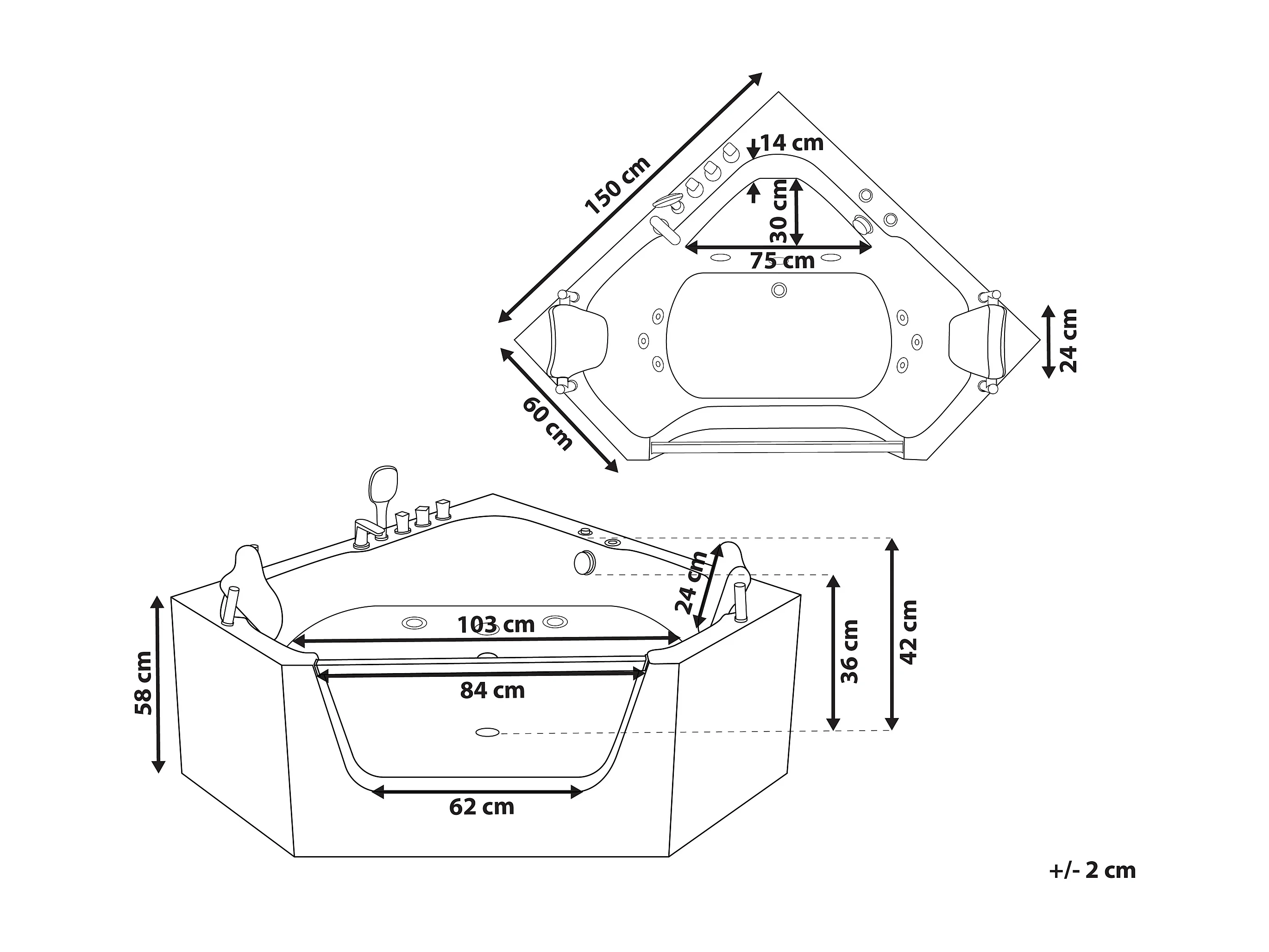 Hoek bubbelbad CANTALLA 150 x 150 cm Wit