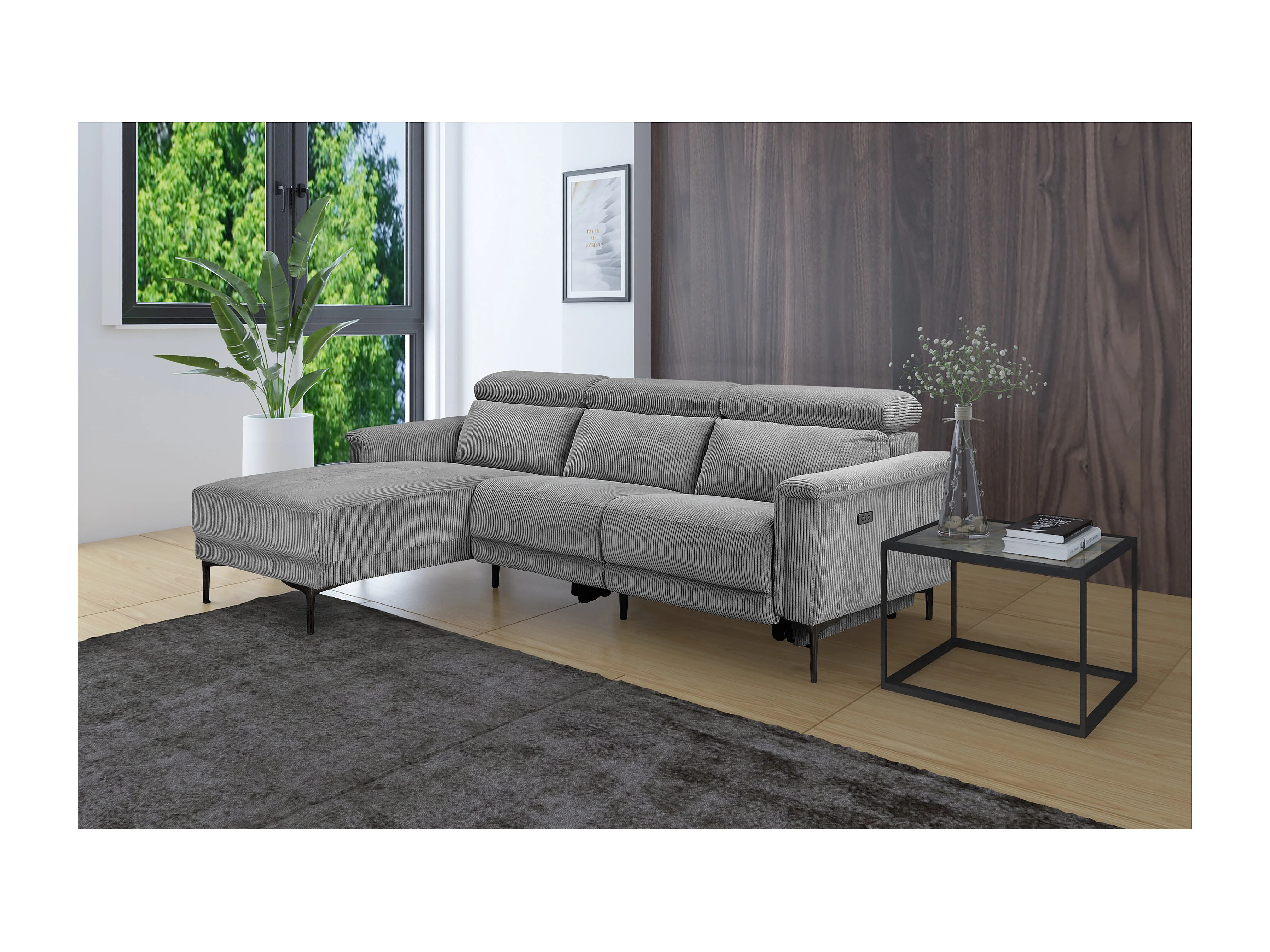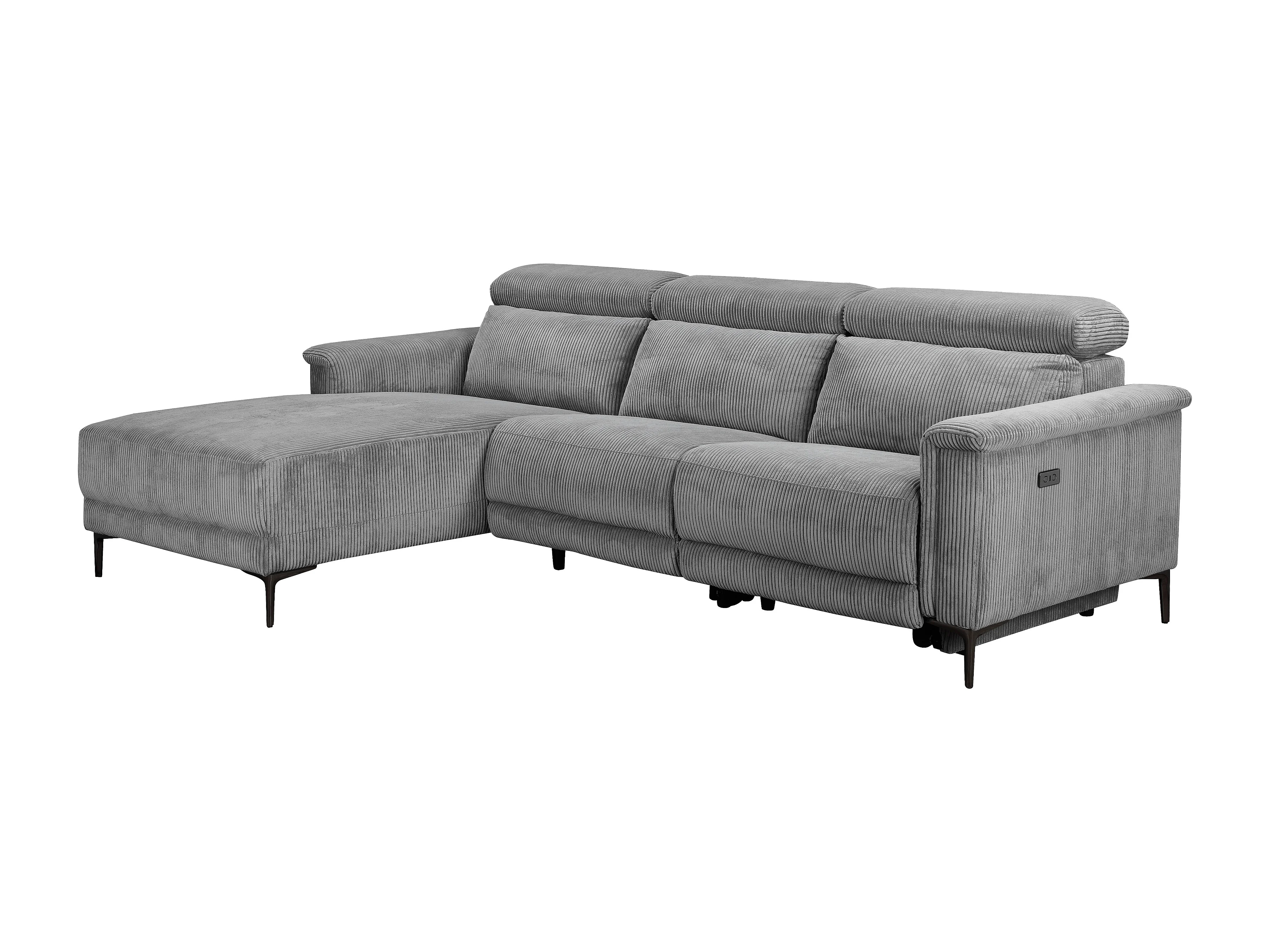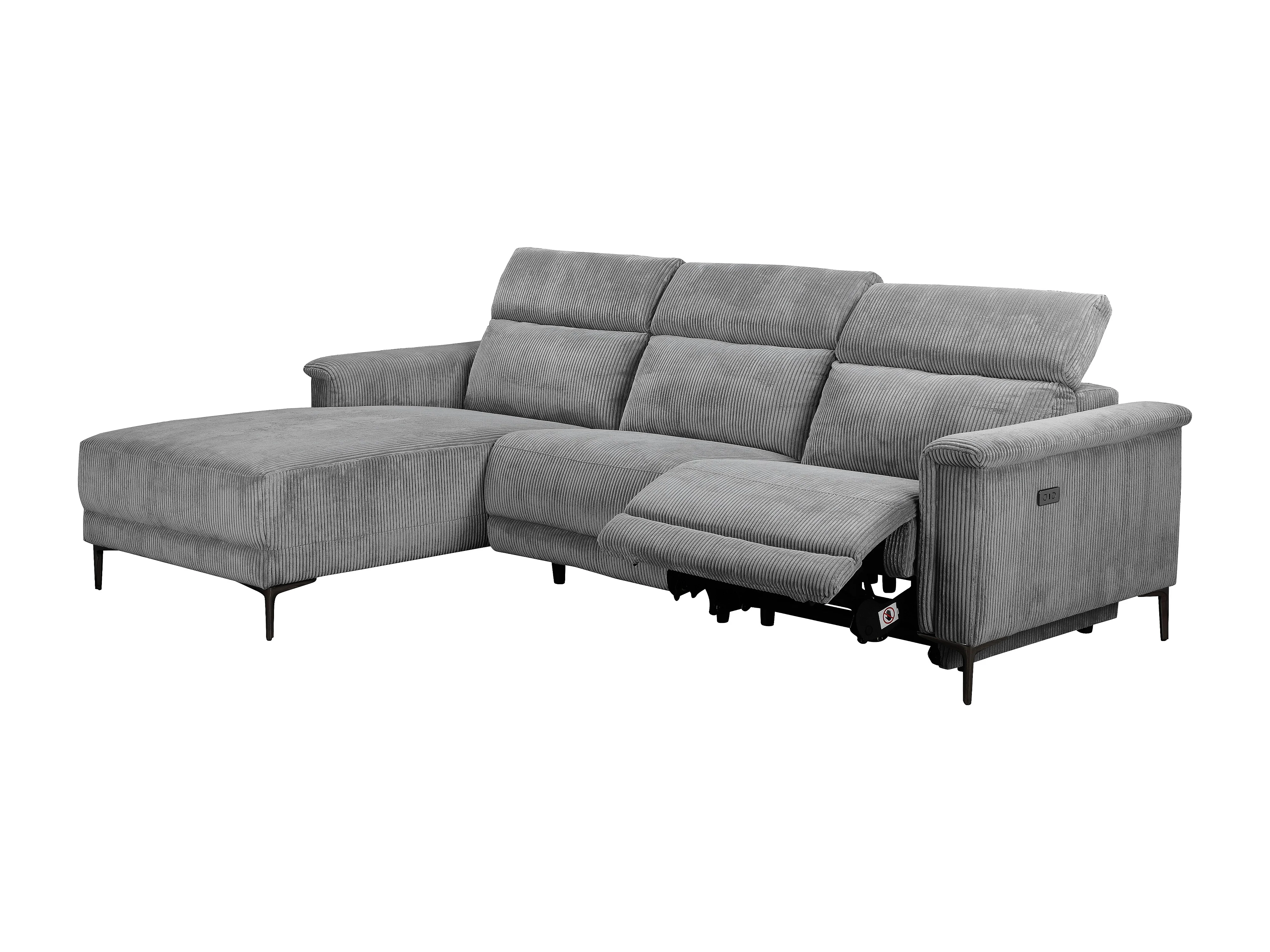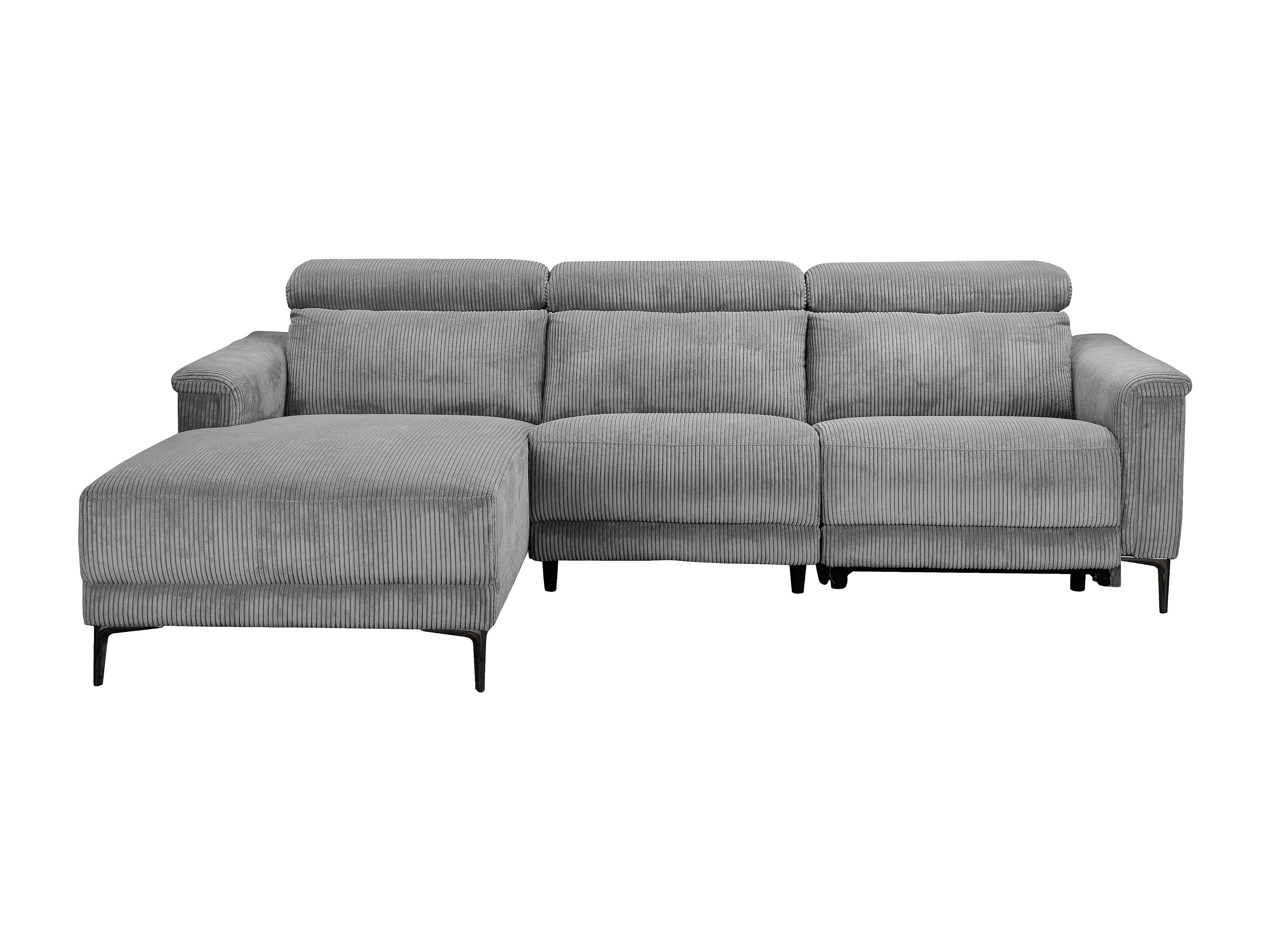 Hoekbank 3 zitplaatsen met 1 elektrische relaxfunctie in ribfluweel grijs