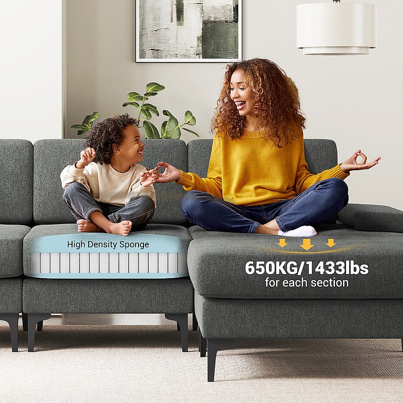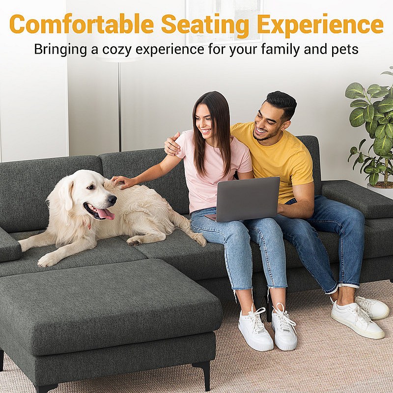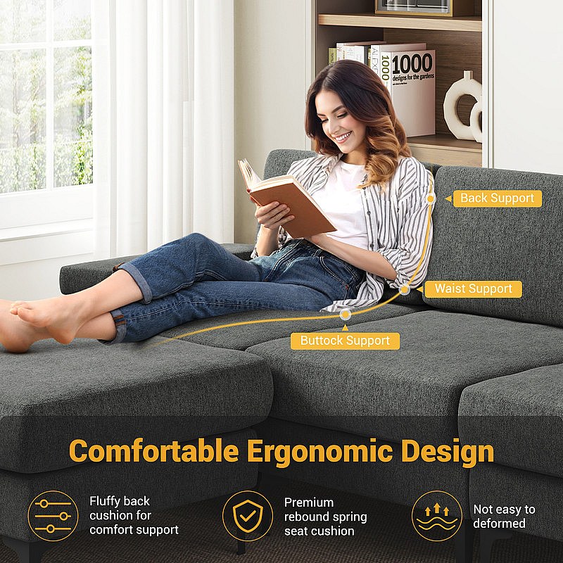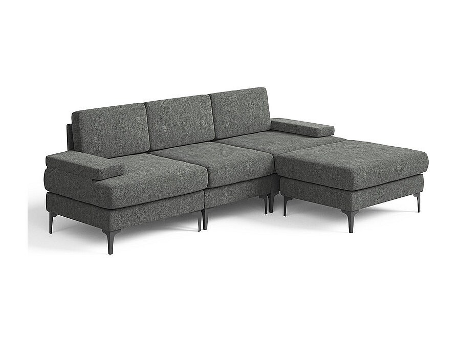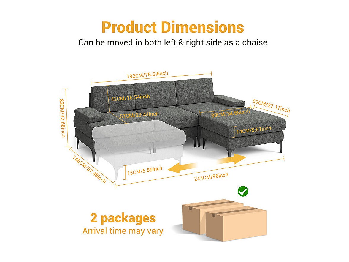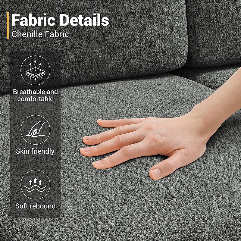 Hoekbank 3-zits in Chenille - met Pouf - Max. Belasting 650kg - 244x146x83cm - Grijs