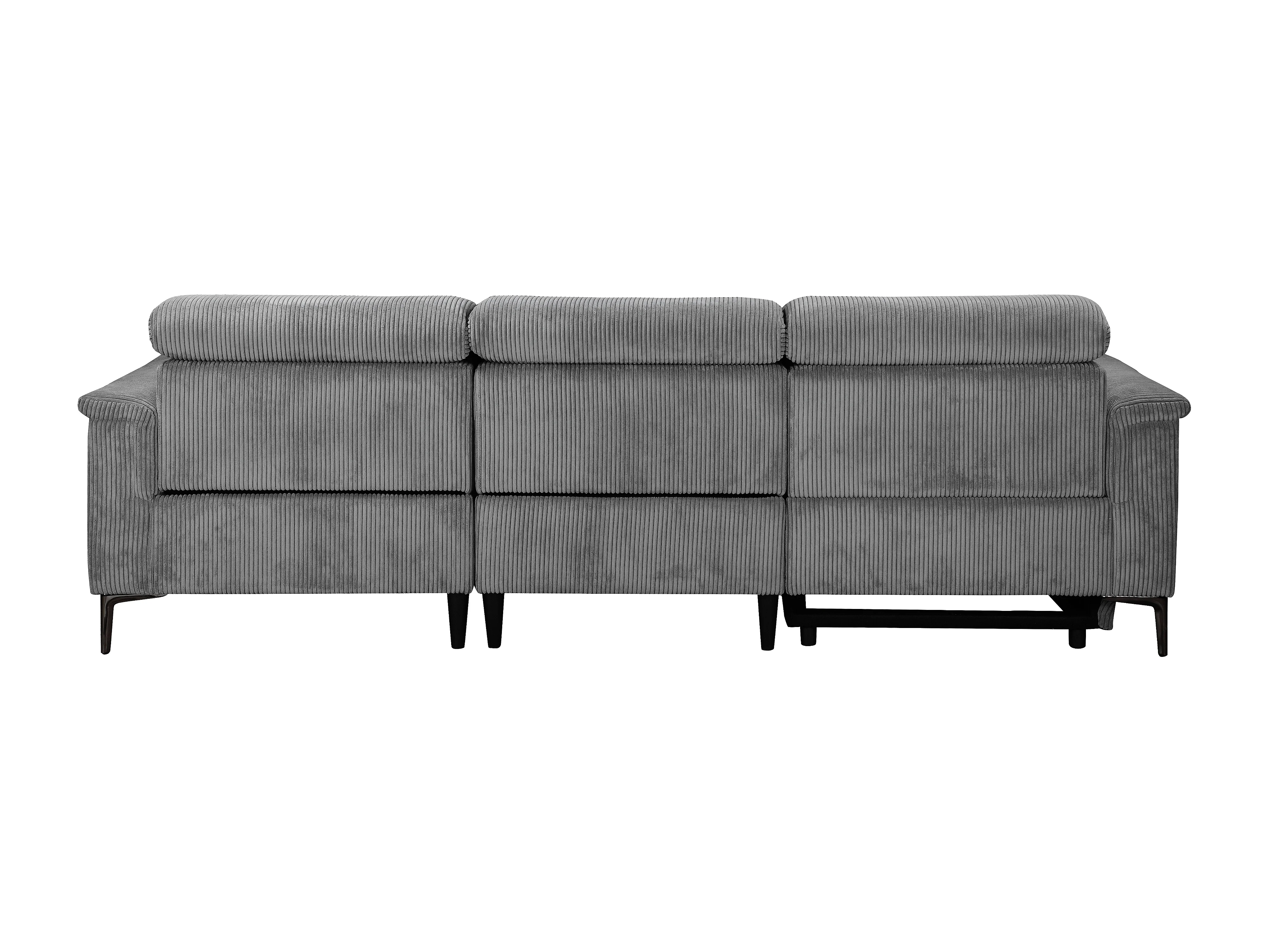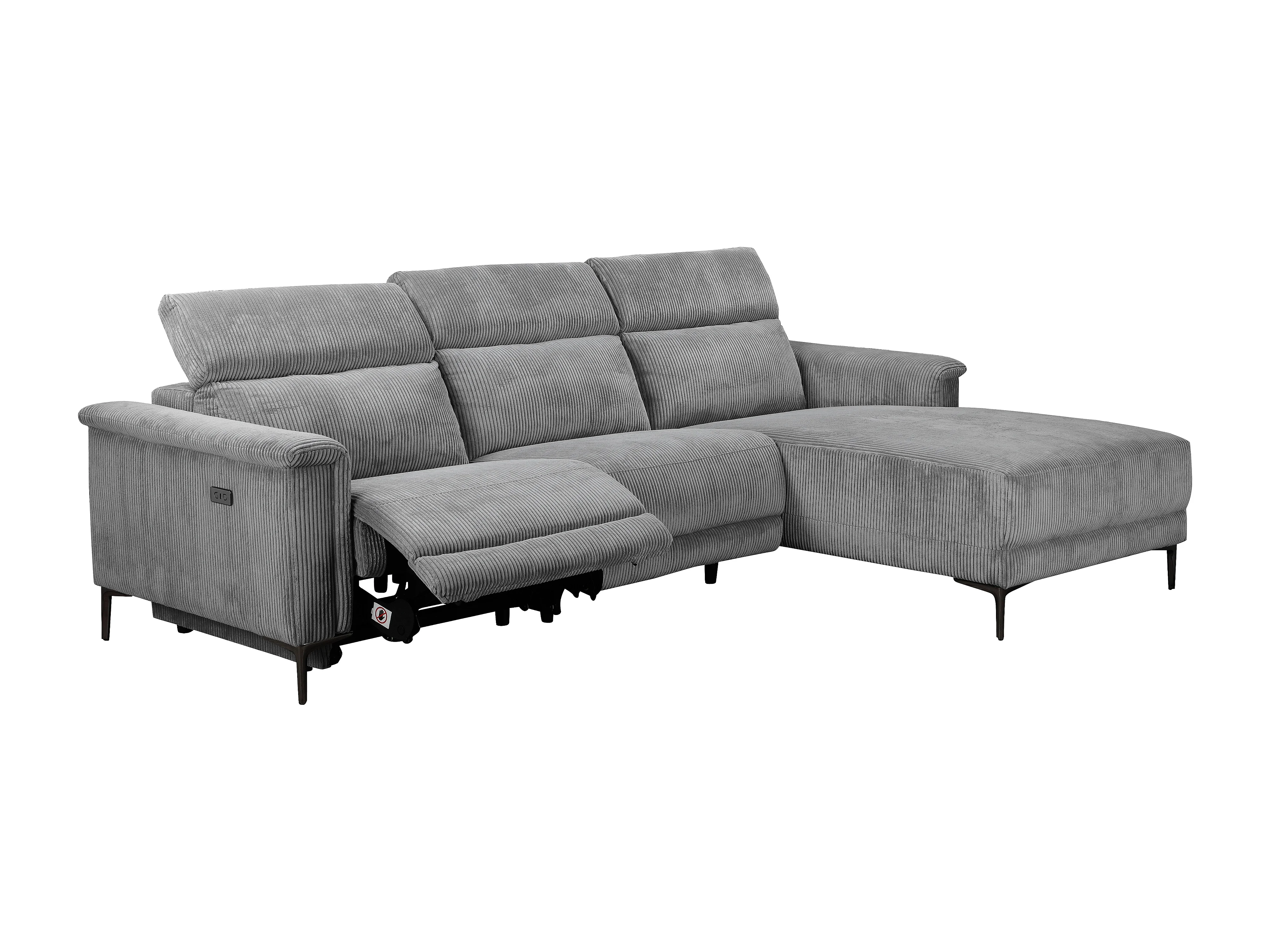 Hoekbank 3-zits met 1 elektrisch relaxelement in grijze corduroy